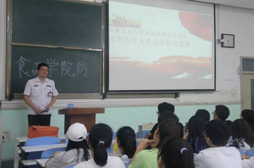 特邀全省十佳优秀教官解文宇在文化路校区工程楼207教室举办防火安全教育讲座。院党委组织员张世昌出席讲座、2019级研究生和主要学生干部参与讲座。