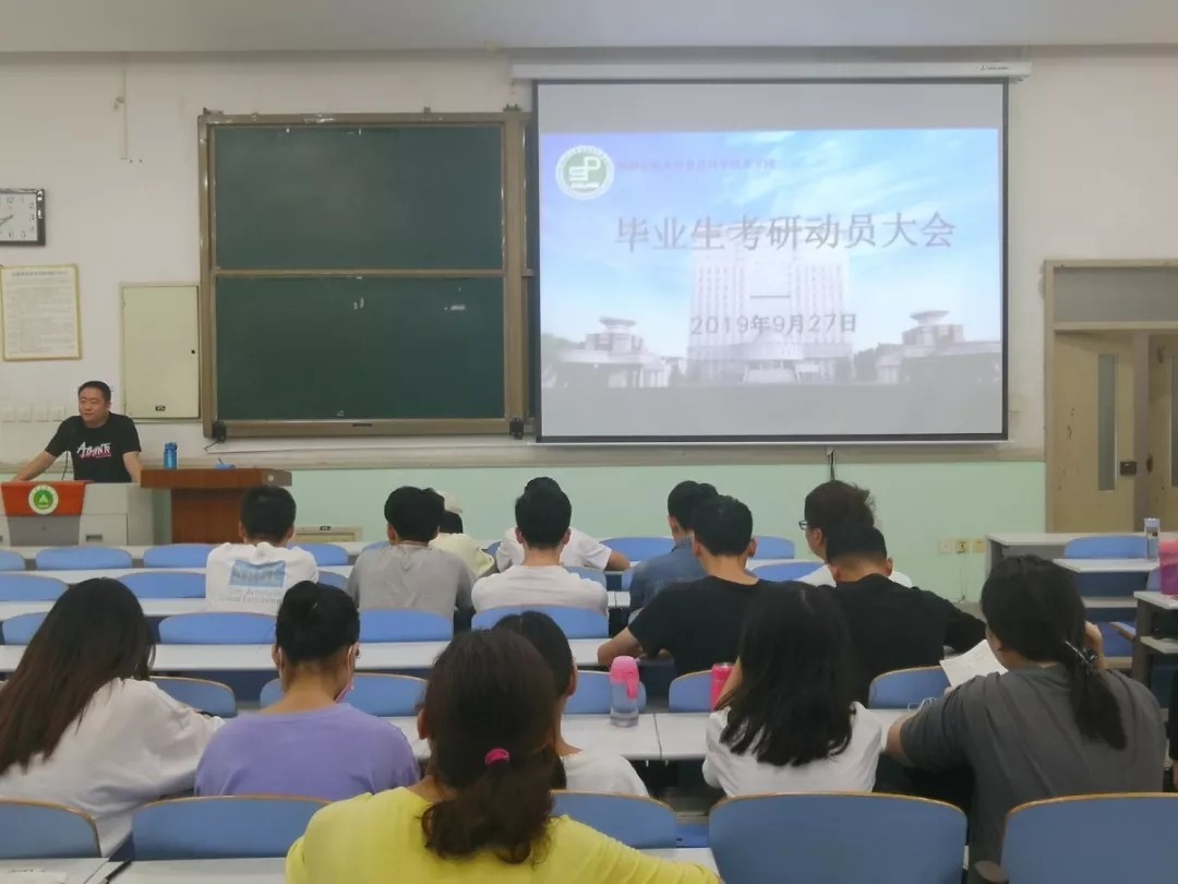 于文化路校区工程楼103教室召开毕业生考研就业动员大会。院团委副书记杨光出席会议,学院全体毕业生参加会议。