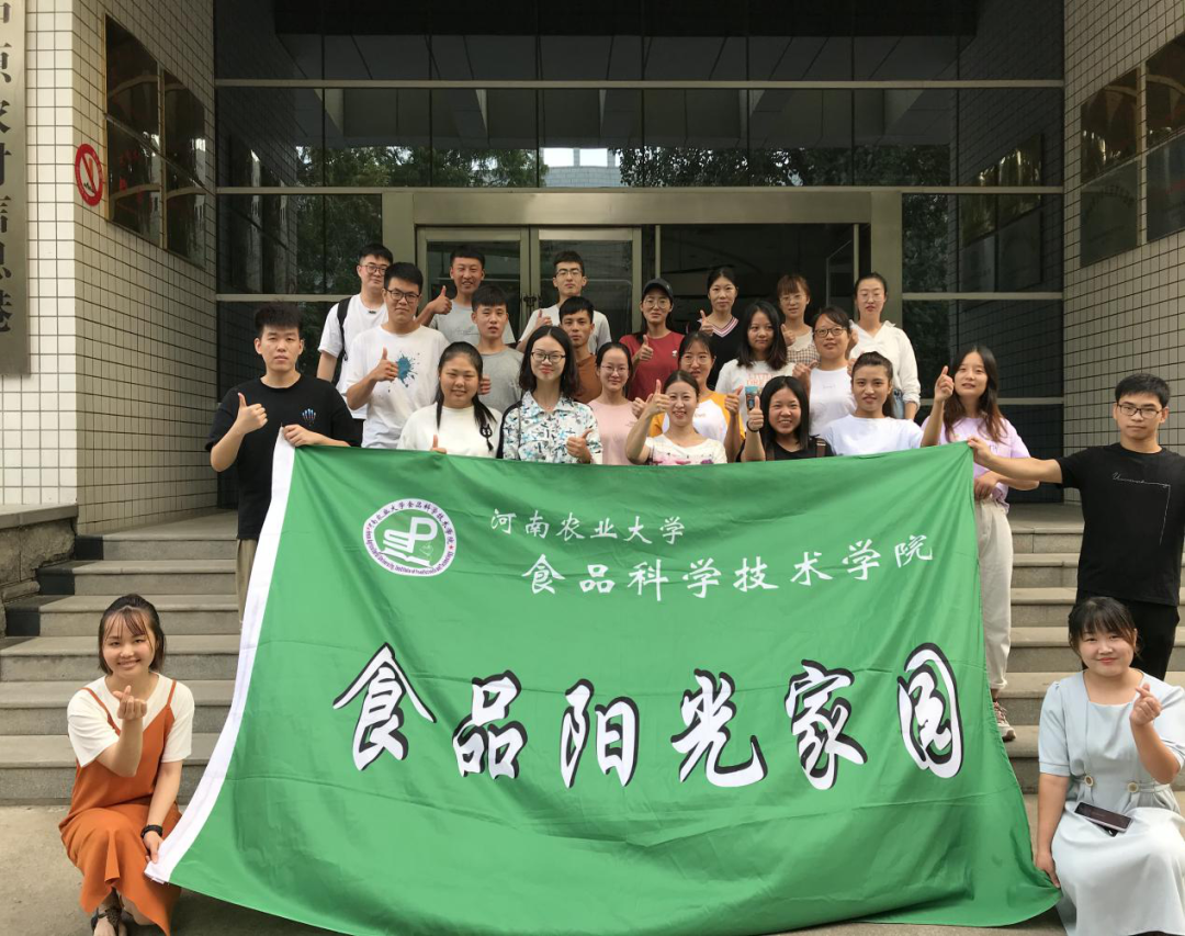 食品阳光家园的研一新生在校史馆门口集合