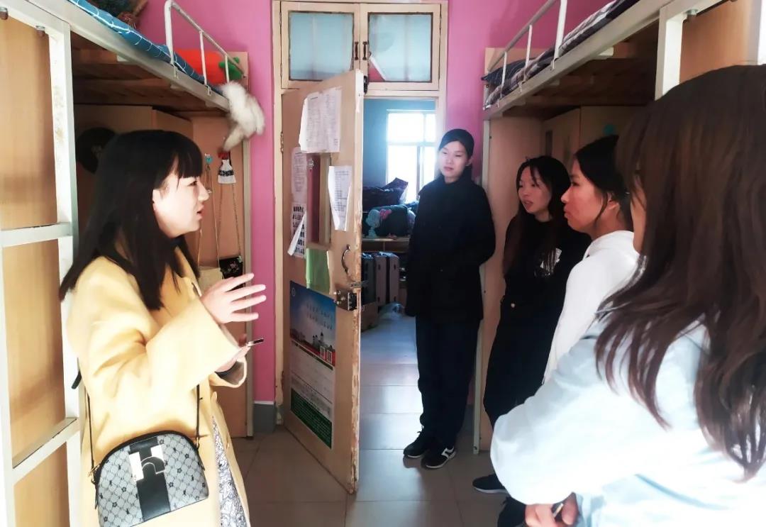 老师黄姗姗、胡梅走访大四学生宿舍,看望即将考研的同学。