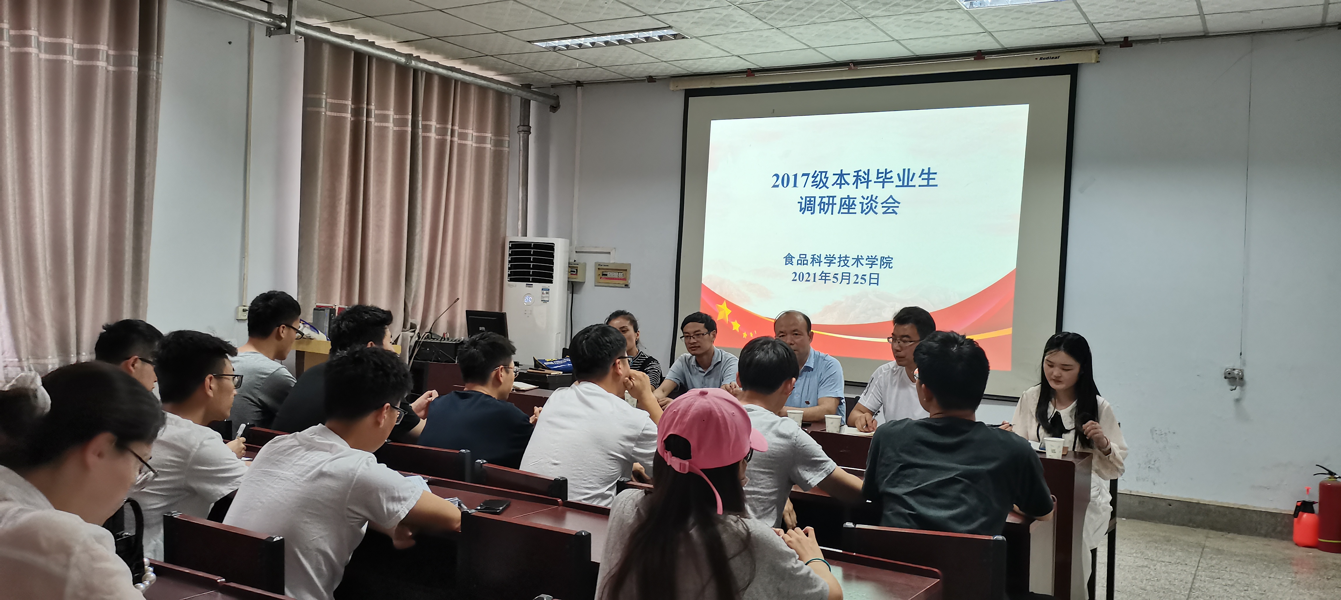 在文化路校区17号楼405报告厅召开2021届食品科学与工程专业毕业生调研座谈会。学院教学院长张剑,食工系副主任徐超、祝超智,学院教学秘书李家寅,食工系青年教师王银平和学院教学干事贾若南出席本次座谈会,学院2021届毕业生代表参加座谈会。