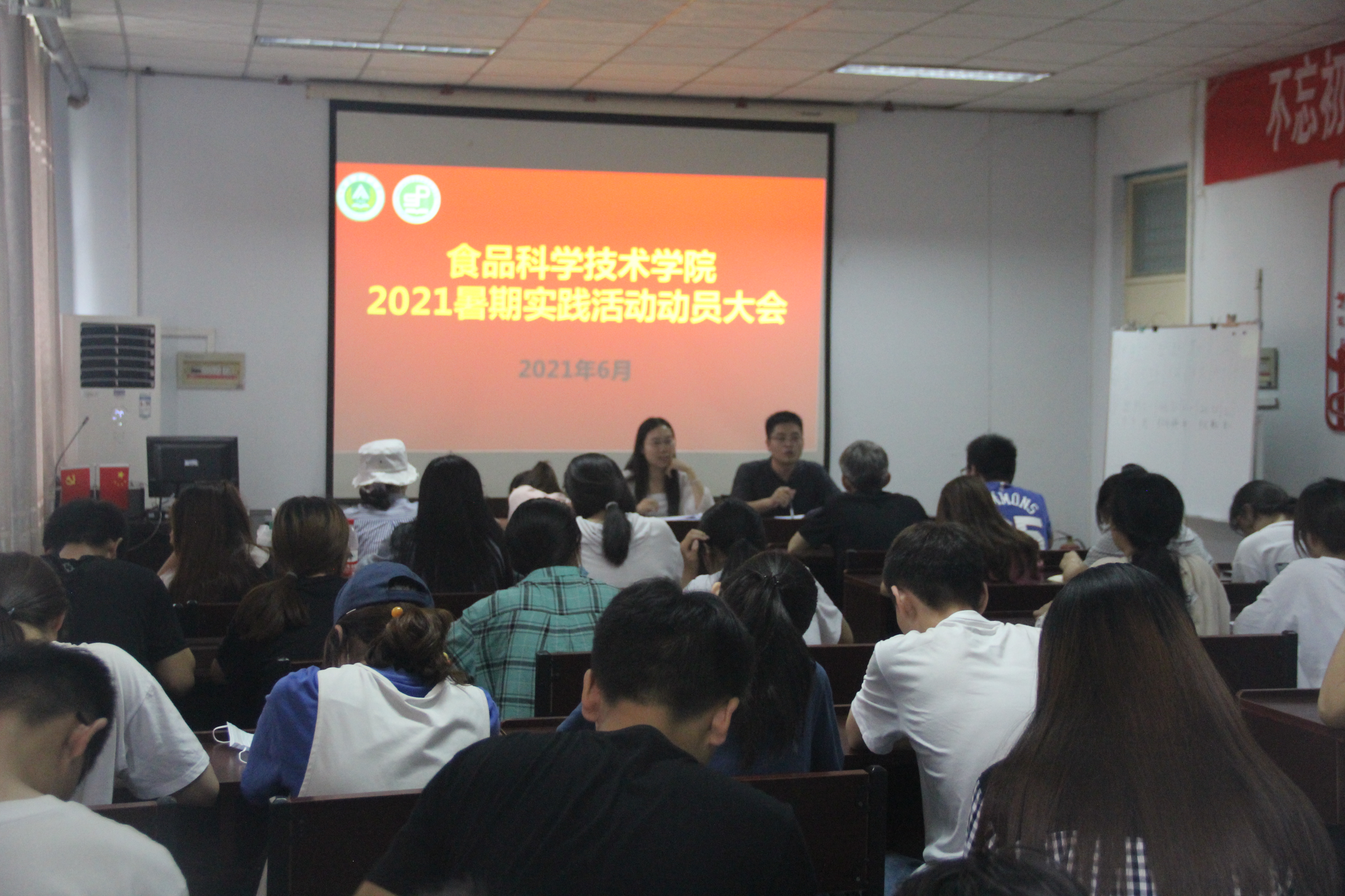 于文化路校区召开暑期实践活动动员大会,院团委书记路平、院辅导员张金龙出席会议,19级、20级各班班长、支书参加会议。