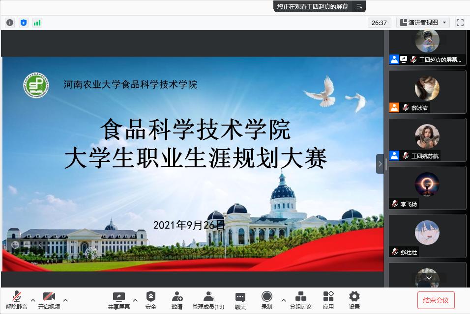 于线上举办大学生职业生涯规划大赛决赛,院团委副书记陈翔、院辅导员张金龙出席比赛并担任评委。