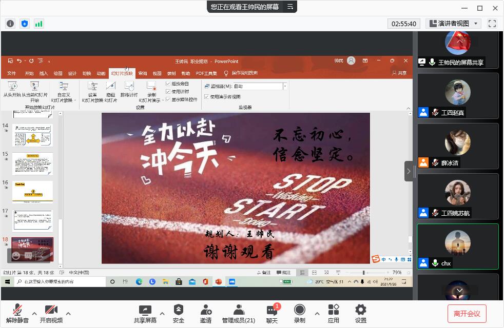 参赛的同学根据自身实际情况制定了详细的职业规划、目标和实施计划,同学们用饱含激情的演讲和图文并茂的ppt描绘着属于他们的蓝图,给评委老师们留下了深刻的印象。
