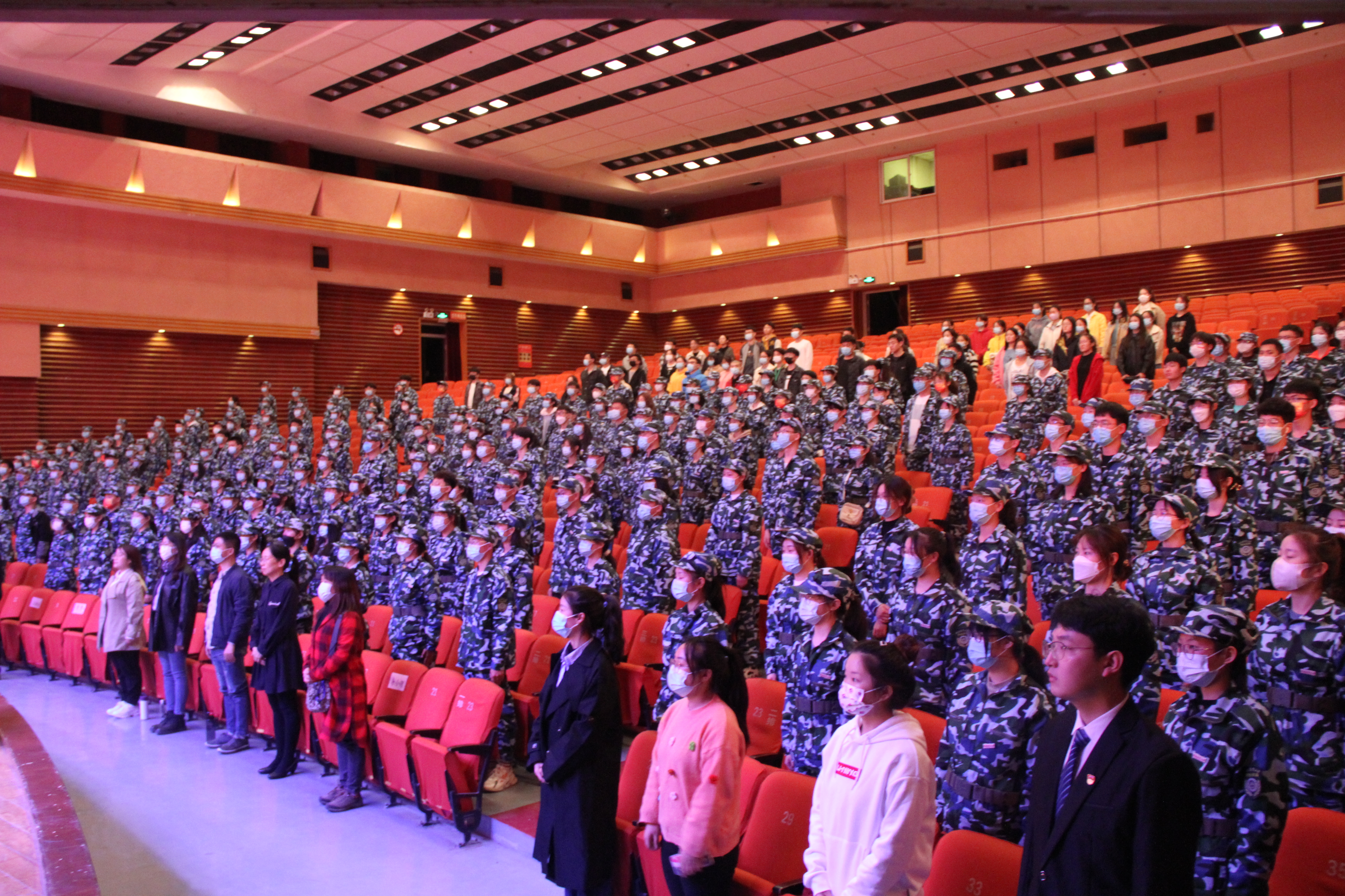 伴随着雄壮的义勇军进行曲,全体师生起立共唱国歌,开学典礼拉开序幕。
