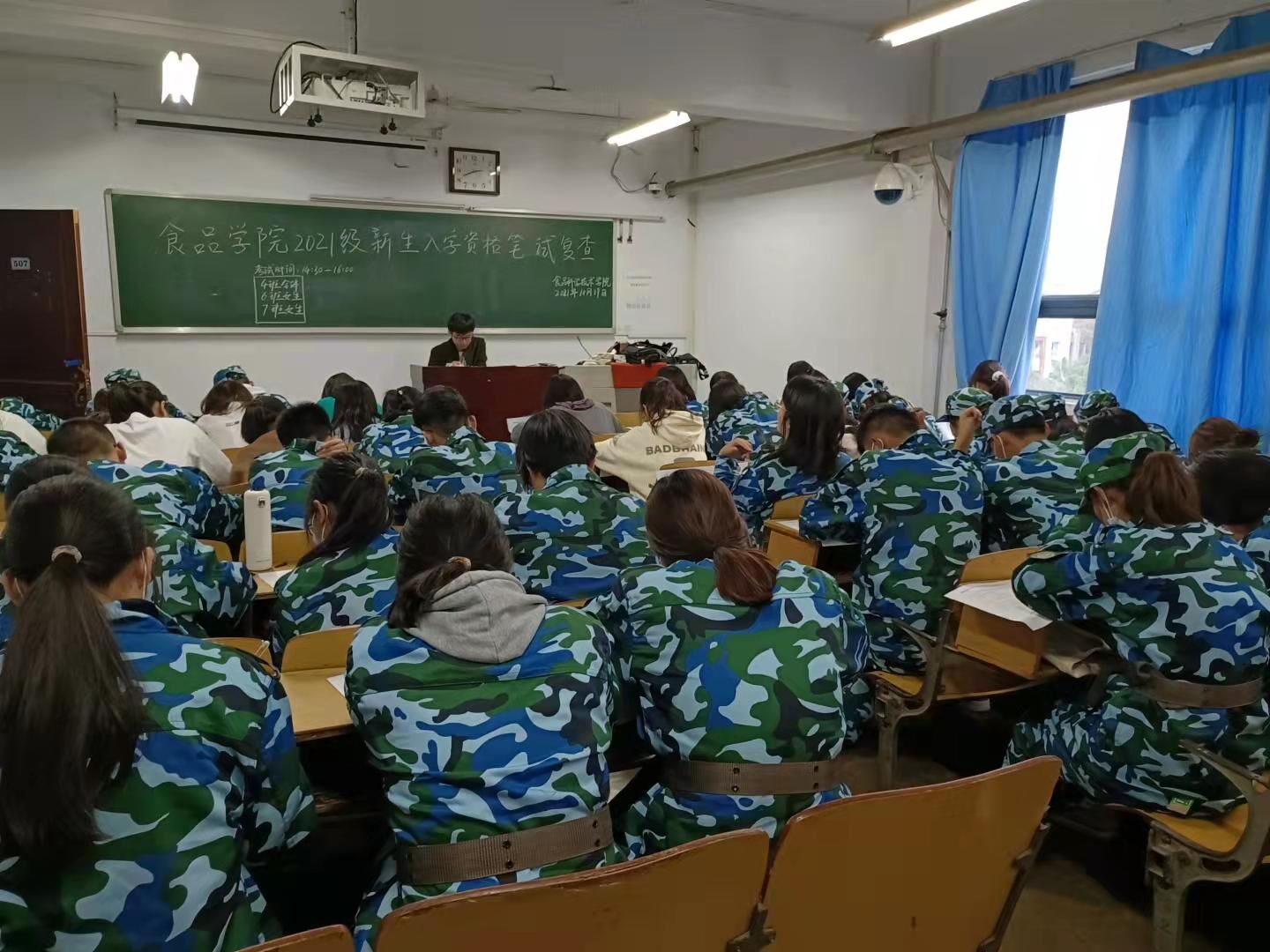 于文化路校区三号楼和桃李园桃西楼组织2021级新生进行入学资格复查考试,2021级全体新生参加考试。