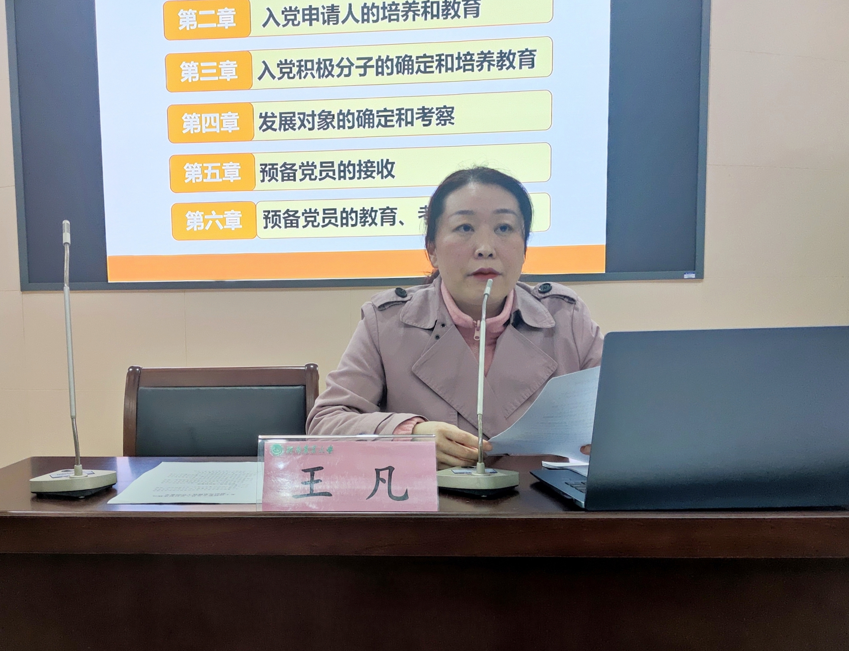 王凡从总则、入党申请人的培养和教育、入党积极分子的确定和培养教育、发展对象的确定和考察、预备党员的接收、预备党员的教育、考察、转正六个方面详细介绍了发展党员工作的具体流程及发展党员工作主要程序的逻辑时间关系。党建中心宣传部负责人杨徐柯为大家详细讲述了入党申请书的书写格式和注意事项,并提醒同学们要结合自身实际情况认真撰写。同学们纷纷表示要按照党员标准严格要求自己,在实践中磨练自己,争做新时代有理想、有追求、有作为的大学生。