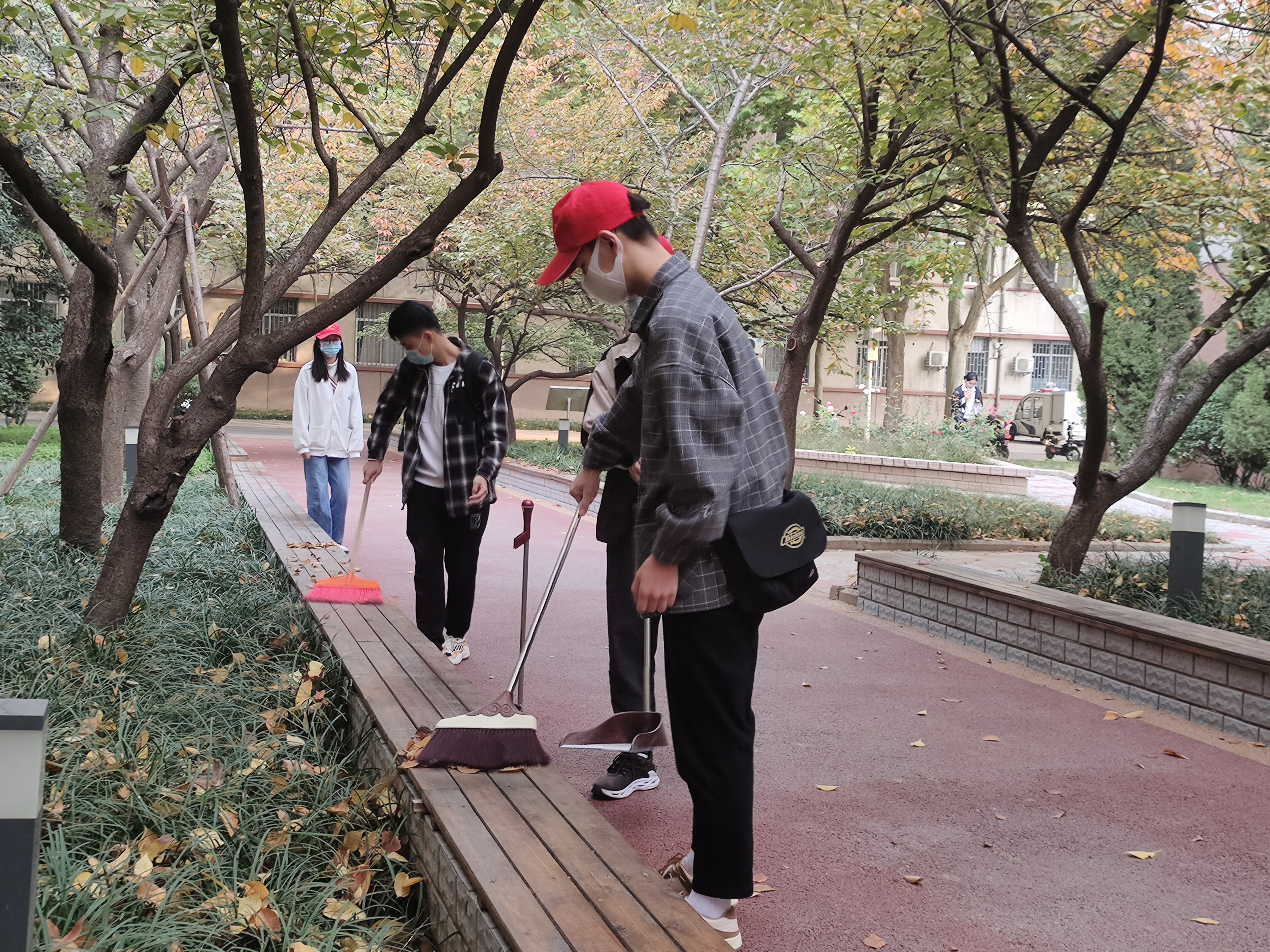 早上,大家在八号楼前集合,由支委分配好任务之后,各支部纷纷投入行动。推广楼、17号楼、3号楼和牧医广场很快有了大家劳动的身影,同学们以饱满的热情来完成各项任务,负责教室的同学一丝不苟地完成擦黑板、扫地、拖地等任务,不放过任何角落。同学们认真清扫道路上的杂物、枯树叶等,一幕幕都构成了这个秋天最美的风景。