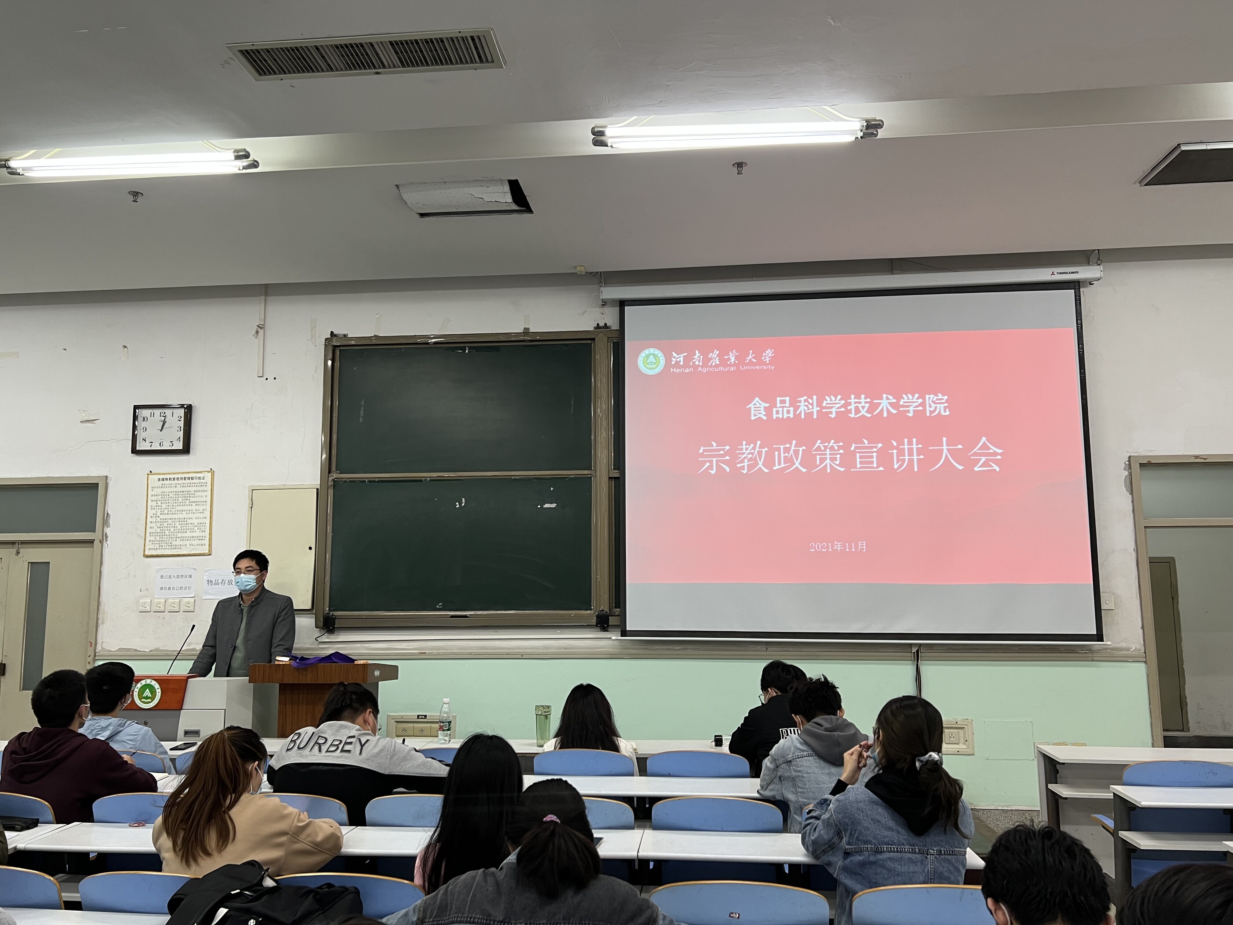 于文化路校区工程楼103召开宗教政策宣讲大会,院团委书记路平、院辅导员张金龙出席会议,各班班级负责人参加会议。