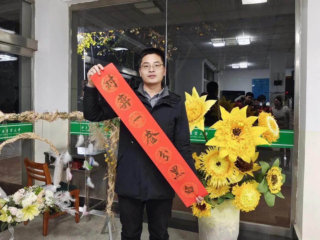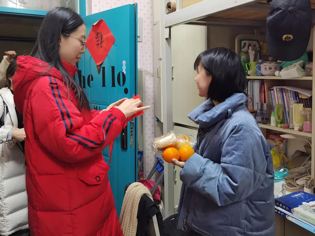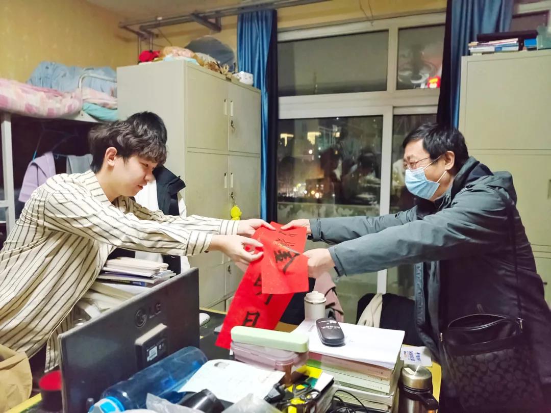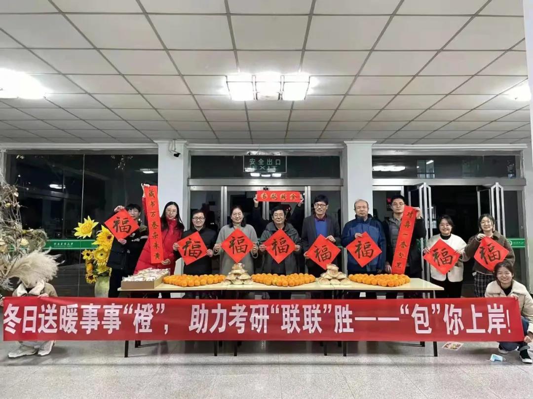 老师对考研学子的衷心祝福。“冬日送暖事事‘橙’,助力考研‘联联’胜——‘包’你上岸!”的口号和条幅预意考研学子顺心如意。老师们将60副对联亲手送到考研学子手中,并帮助他们一起把对联贴在宿舍门上,也把一份份承载着亚洲色吧