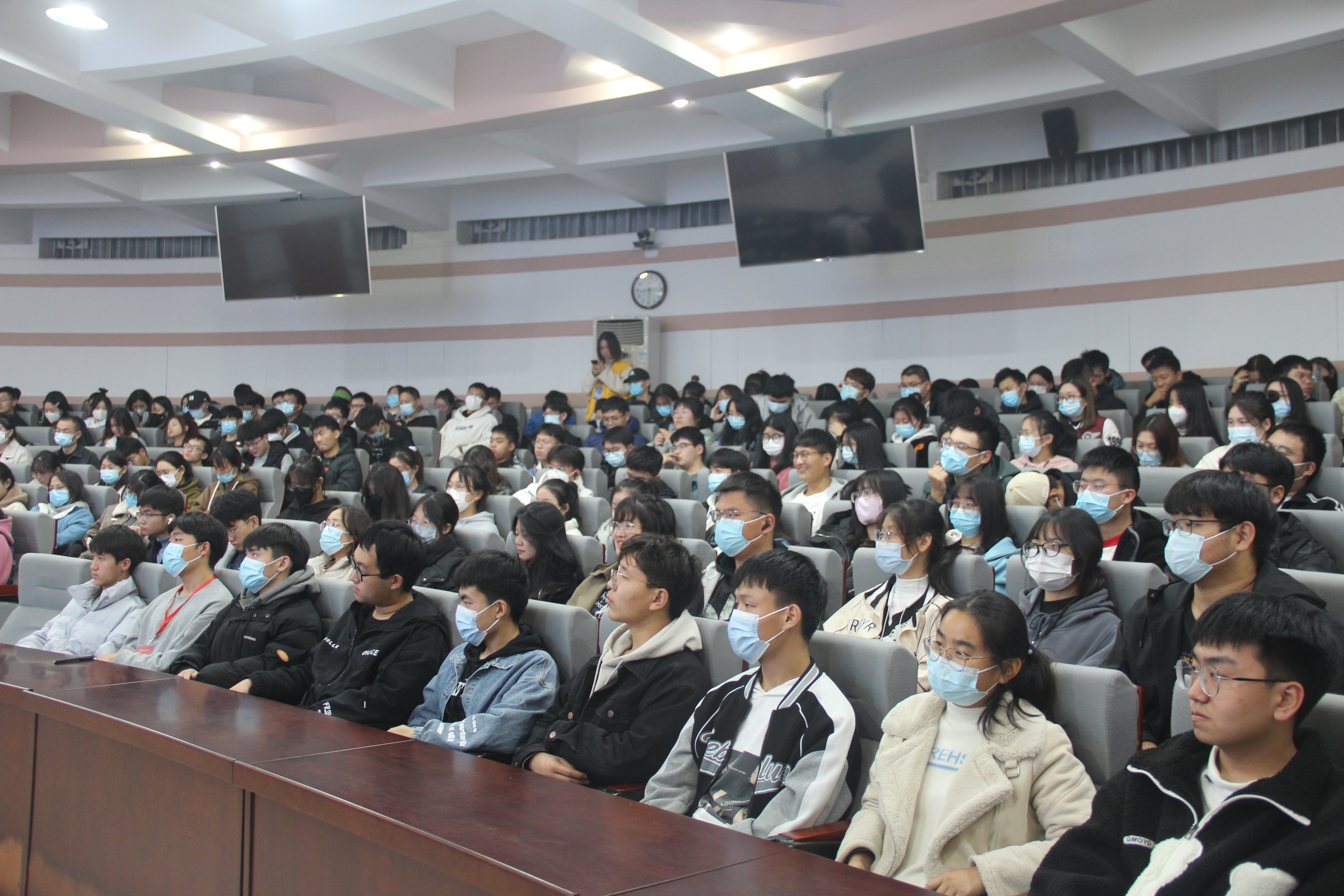 李蓓蓓介绍了“互联网+”创新创业大赛的背景和近年来我校优秀作品,分析了高校、社会和国家对大赛的重视程度,希望同学们认真听讲,通过讲堂进一步丰富创新创业和“互联网+”大赛相关知识,提高创新能力。