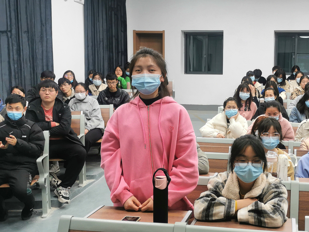 18级食检一班马如想、石必博担任主讲,院部分学生参加会议。