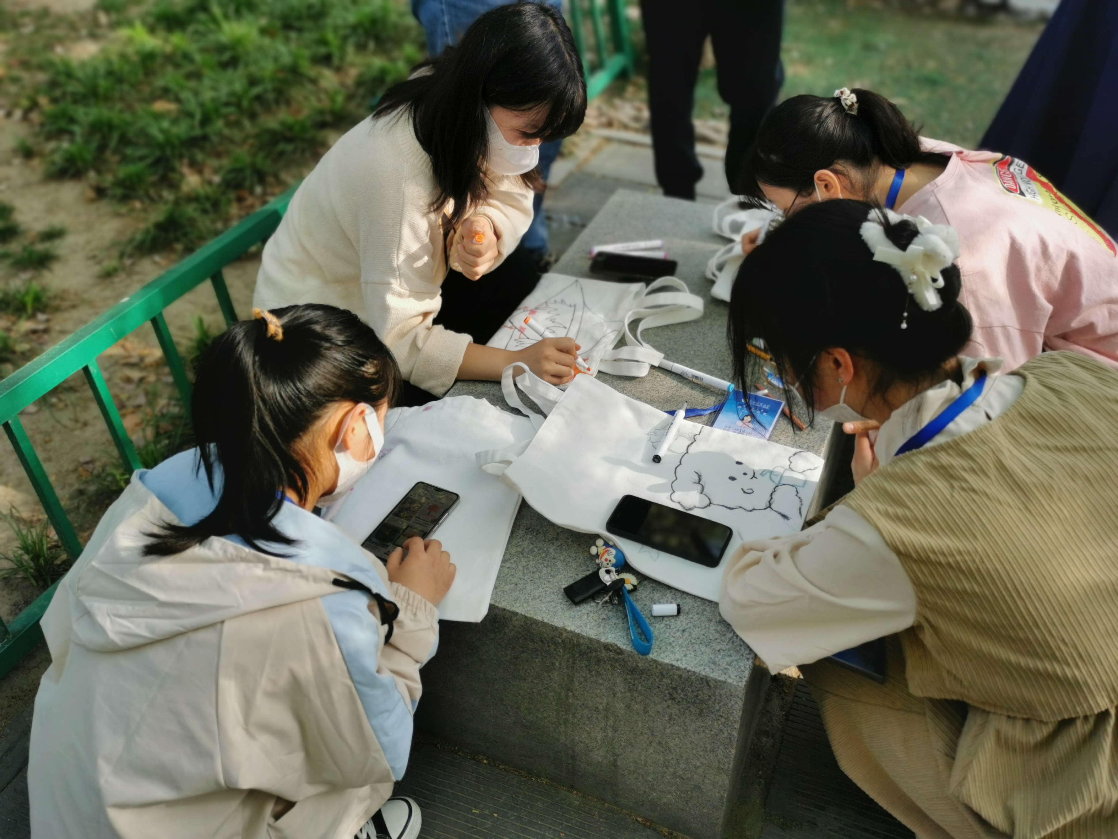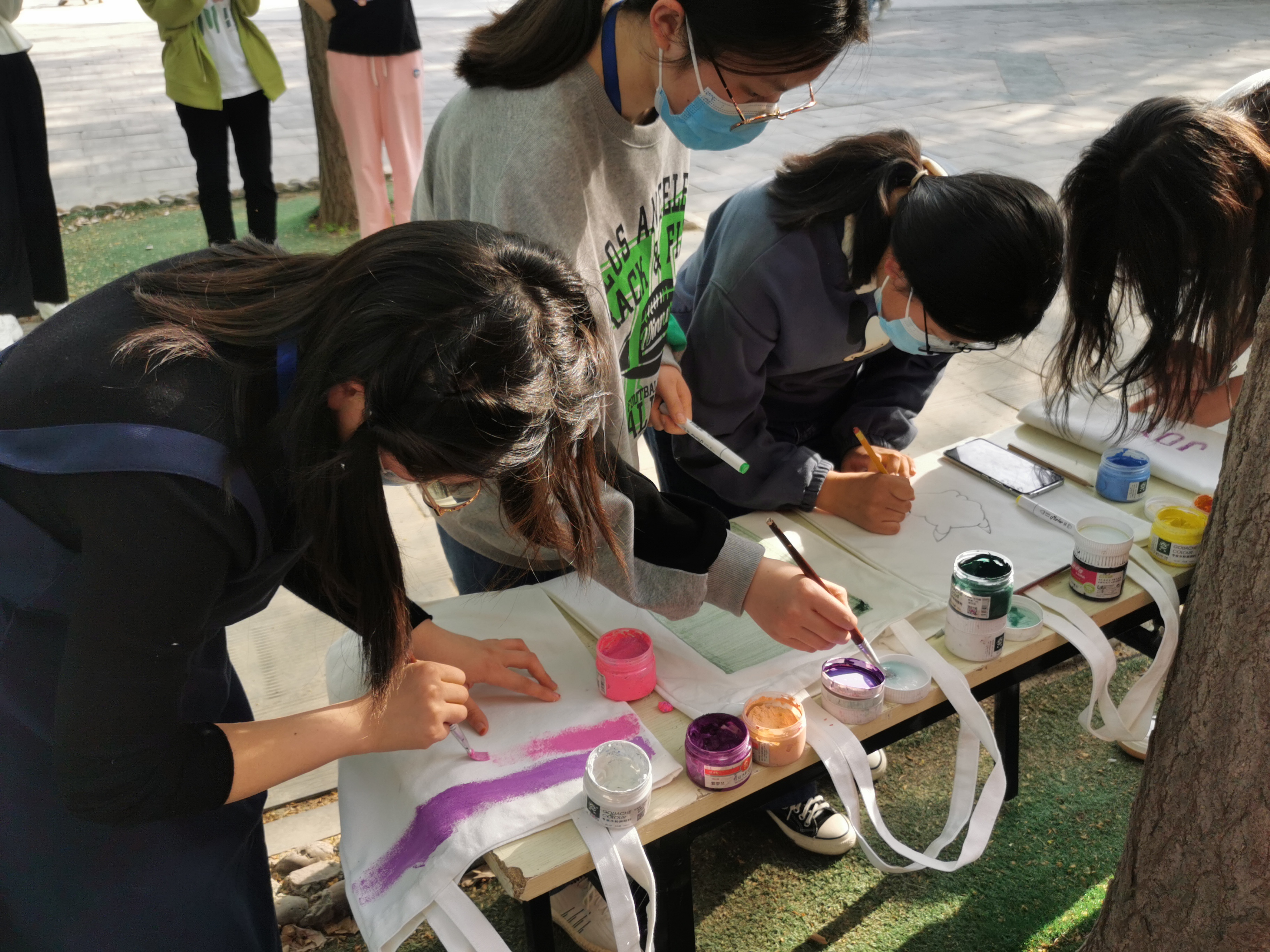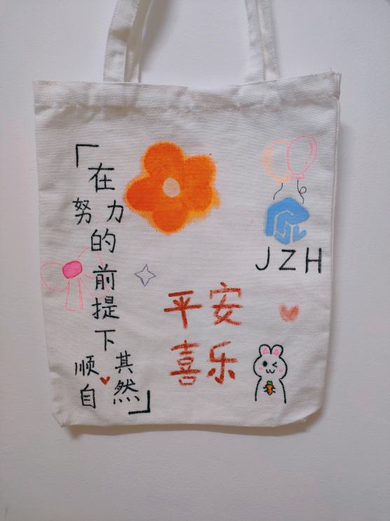 学院在牧医广场提前准备了颜料和绘画工具,同学们领取帆布包后可以选择现场制作或者带回宿舍绘画,最终以图片形式展示。同学们手执画笔,将栩栩如生的动物、惟妙惟肖的建筑、活灵活现的人物,以及满含心意的寄语绘于包上。