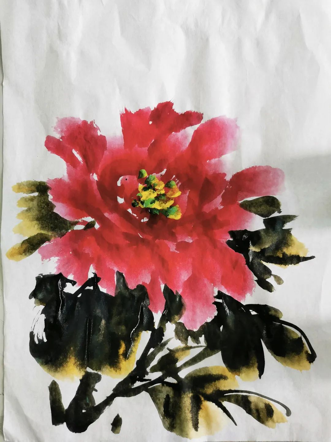 素手执画笔,丹青跃纸上。只见姚黎老师手执画笔,蘸取三两颜料,挥舞几下,一朵栩栩如生的牡丹便跃然纸上。几笔勾勒似云锦,牡丹花开心中情,我们仿佛看到了花儿从含苞待放到缓缓绽放,最后到争奇斗艳的全部过程,怎一个好字了得。