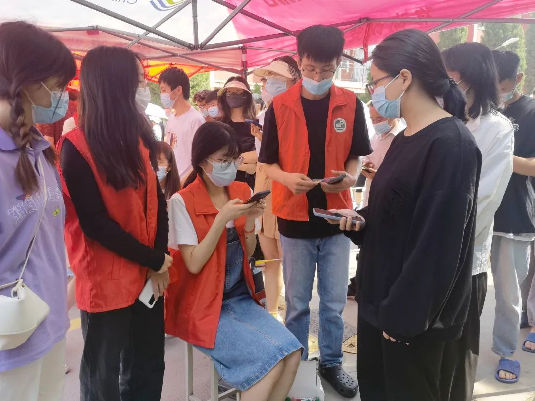 志愿者的引导下,同学们带好口罩按照规定的检测时间,分批错峰到达采样现场,依次在登记区完成信息登记后,由医务人员进行核酸采样。在志愿者的配合帮助下,整个过程井然有序,志愿者们的积极行动,为疫情防控工作贡献了一份属于自己的青春力量。