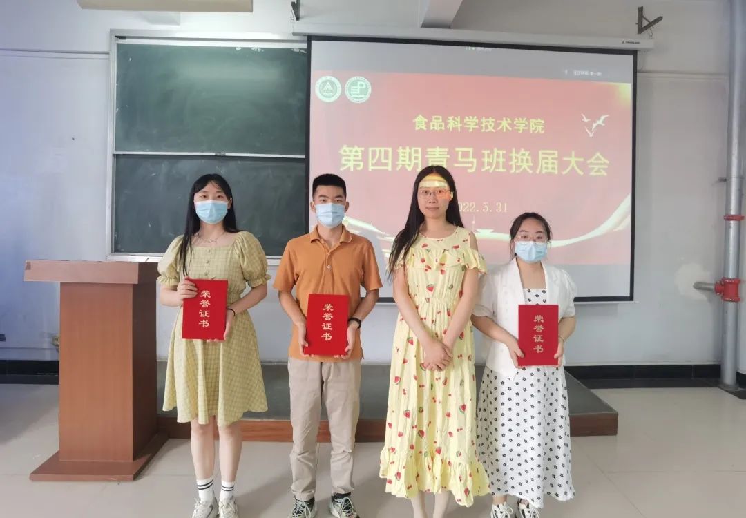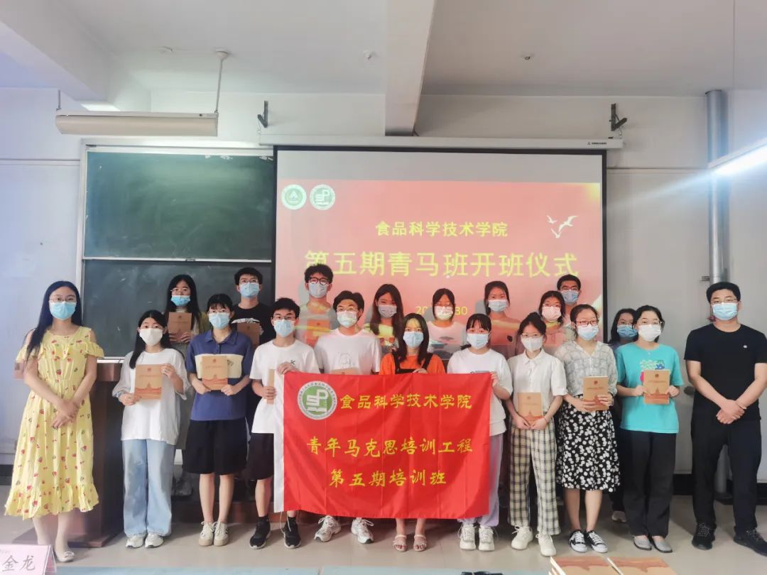 青马班优秀学员的决定》及学院第四期青马培训班顺利结业学员名单。路平,张金龙依次为优秀学员颁发荣誉证书,为第四期青马班毕业学员代表颁发结业证书并扣上“青马培训第一粒扣子”。第四期青马班支书朱亚威对第四期青马班培训学习成果进行了总结汇报。她希望广大青马班成员要不牢记党的要求,为党的伟大事业奉献青春。张金龙宣读了第五期青马培训班学员及班委名单。路平为新一期青马班学员授旗。第五期青马班支书陈曦代表第五期青马班全体学员做出承诺,将进一步坚定理想信念,努力成为马克思主义的拥护者,实践者和传播者。