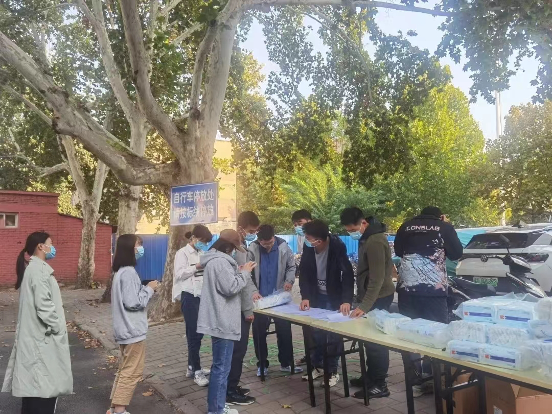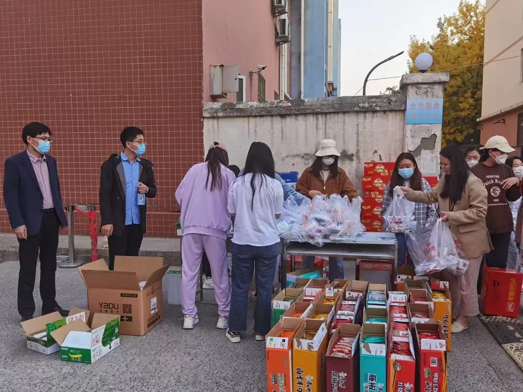 学子发放暖心防疫物资,努力做好疫情管控期间学生的后勤保障和心理疏导工作。