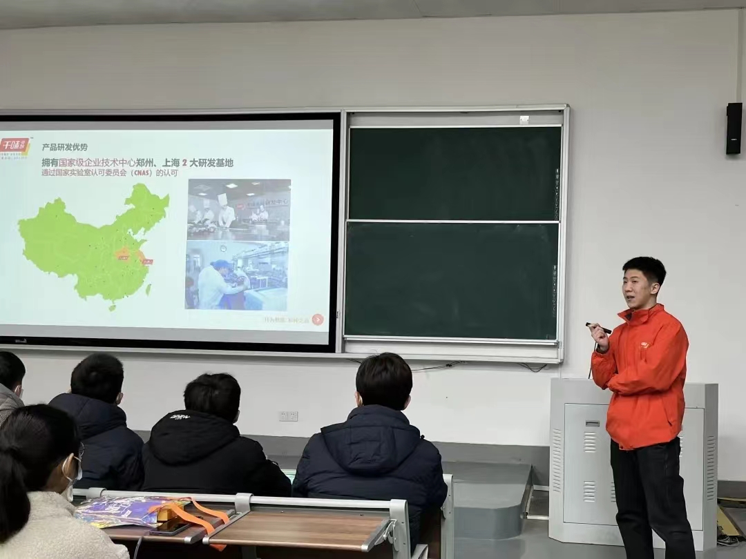 陈国强结合自身工作经历向同学们讲述了自己对千味央厨的认识以及公司的制度要求,叮嘱同学们努力发扬吃苦耐劳精神,树立终身学习的观念,充分利用社会平台学习知识,磨练本领。