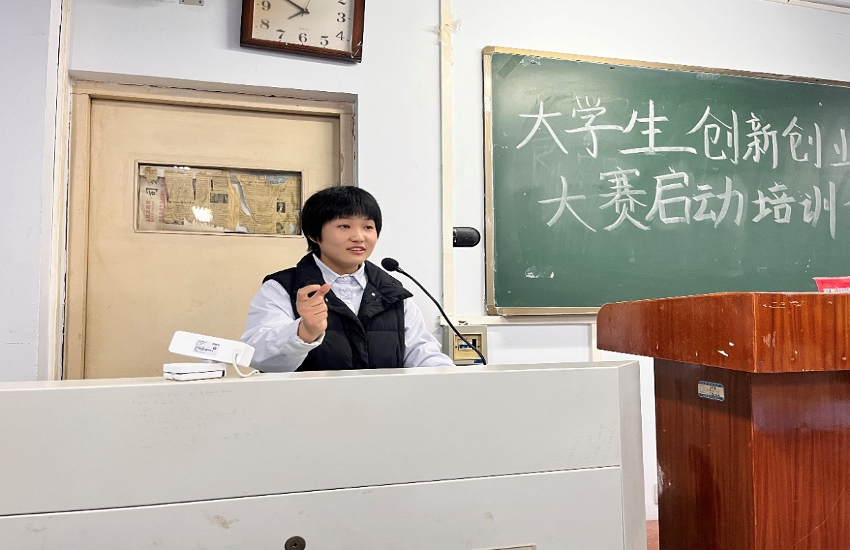 在培训会上,两位同学结合自身比赛经验,分别对各类大学生创新创业系列比赛的参赛流程进行了详细讲解。朱亚威为大家详细介绍了“挑战杯”、“互联网+”等比赛的一般赛制,带大家了解了创新创业大赛的赛事要点,解答了同学们的疑惑。梁梦莹从什么是创新创业、参加比赛的方法、为比赛需要所做的准备三个方面向同学们讲解,并结合自己的经验从团队的选择及项目书的书写两个方面为大家提供了具体的指导。两位同学的分享使同学们对创新创业类型的比赛产生了浓厚兴趣,激发了同学们的参赛热情。