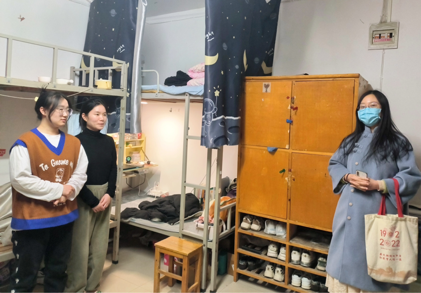 (通讯员 张逸蕙 图片 赵文月)为及时了解同学们的思想动态,排查宿舍安全隐患,2月21日,院团委书记路平,院团委副书记陈翔,院辅导员张金龙、杨自尚、王晓杰,一同深入学生宿舍进行走访排查。