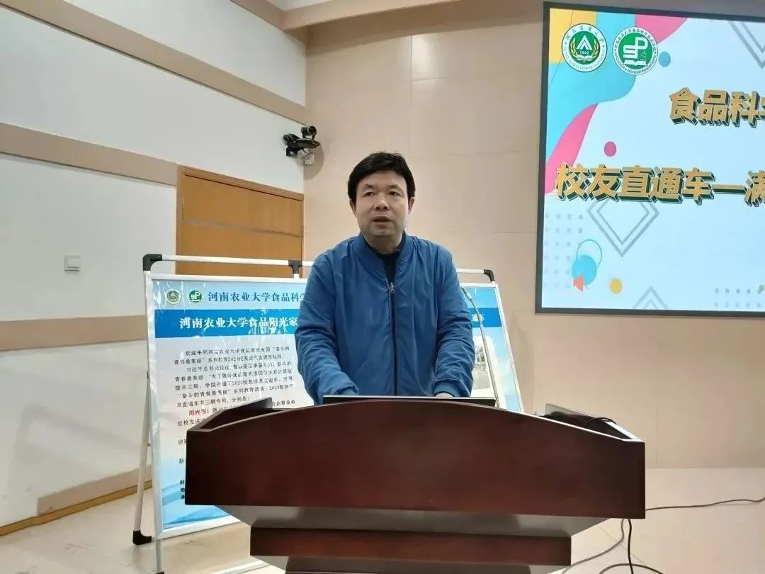 张剑做总结讲话,他对优秀校友的到来表示感谢,希望同学们能够从中有所收获,保持乐观积极的心态,做事专注用心,以优秀校友为榜样,在大学期间努力提升自己的专业水平,提高综合能力。他强调,食品行业是朝阳行业,无论在全省还是全国,食品行业对人才的需要都很强烈,待遇也不断优化,同学们一定要鼓足干劲,力争上游!