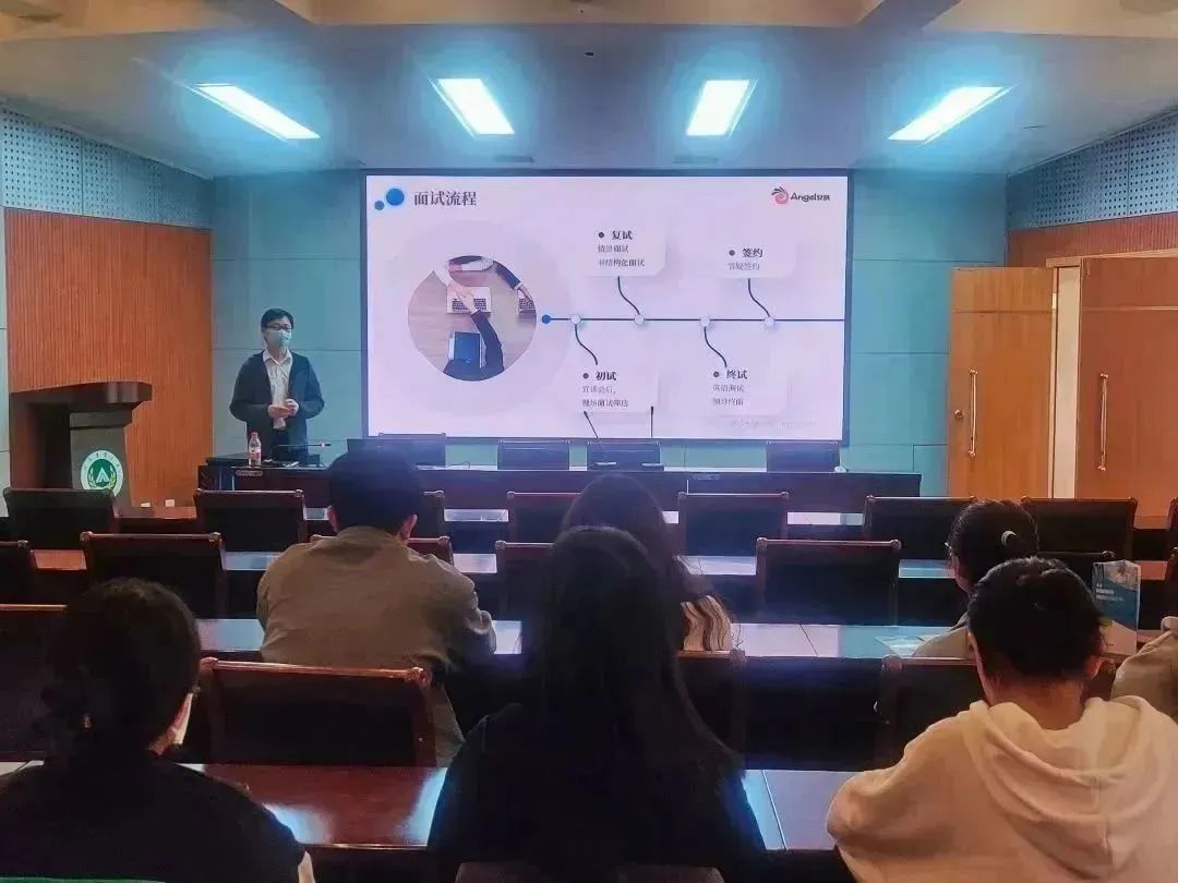 于文化路校区一百人报告厅召开安琪酵母2023校园招聘宣讲会,安琪酵母集团人力资源高级主管梁威进行招聘宣讲,亚洲色吧