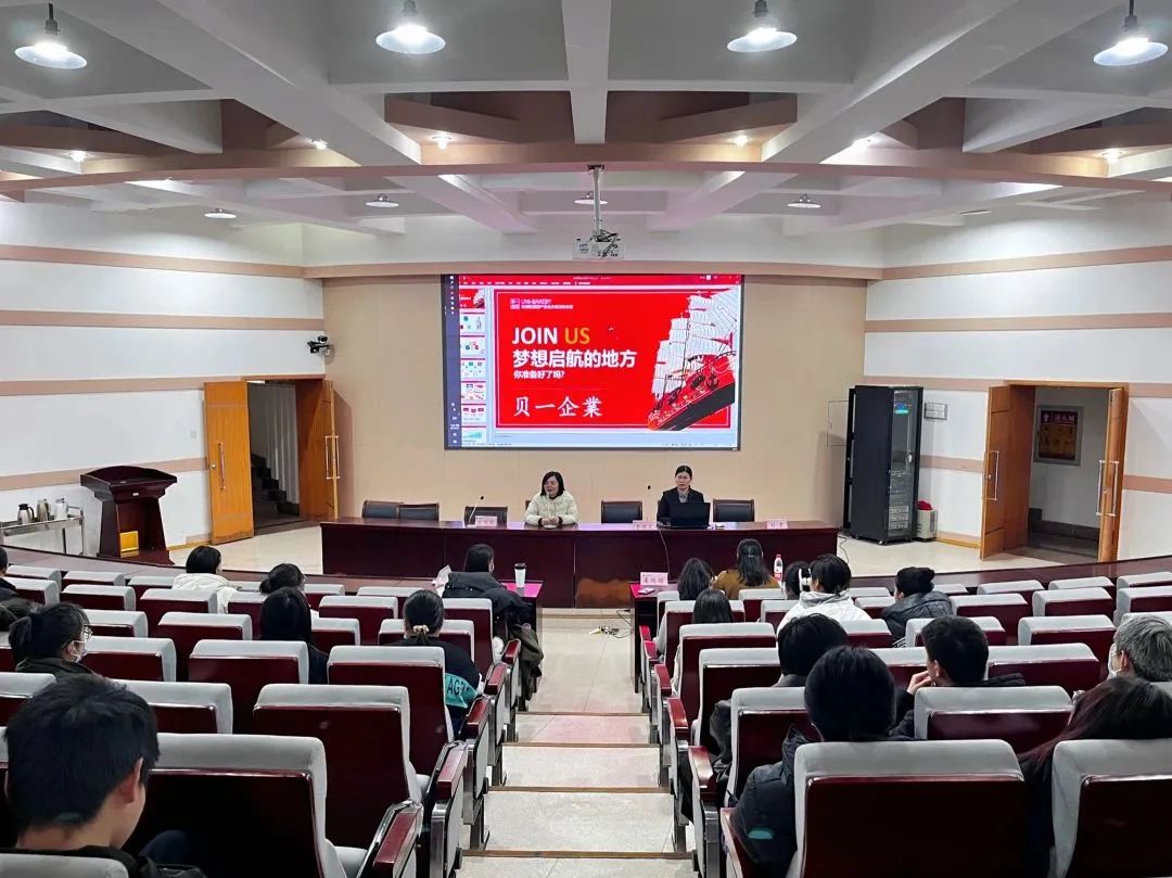 于文化路校区三百人报告厅召开山东贝一企业2023届校园招聘会。山东贝一企业相关负责人出席会议,亚洲色吧