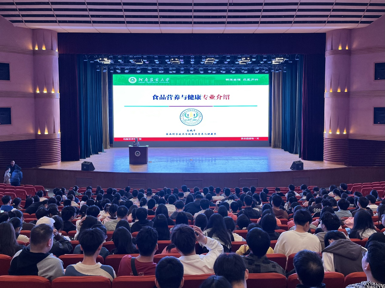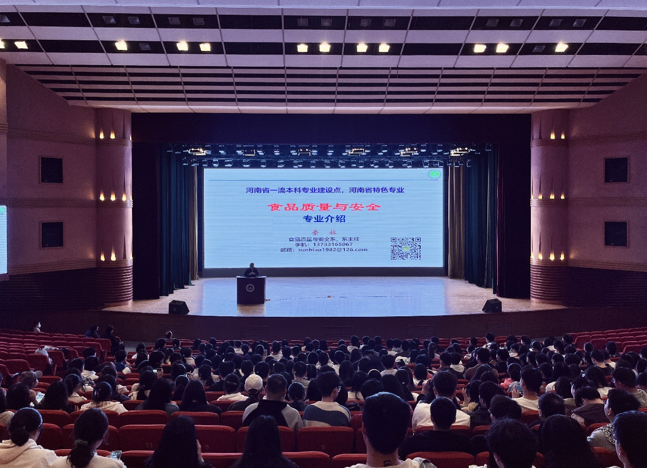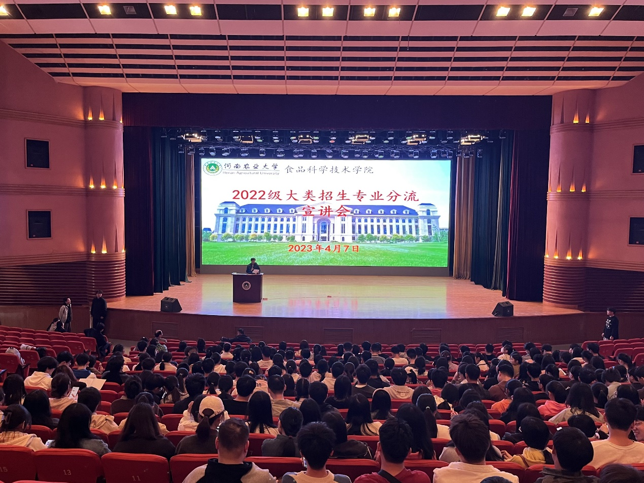 于文化路校区千人大礼堂召开2022级大类招生专业分流宣讲会,院长张剑、食品科学与工程系主任柳艳霞、食品质量与安全系主任索标、食品营养与健康系主任高晓平出席会议,亚洲色吧