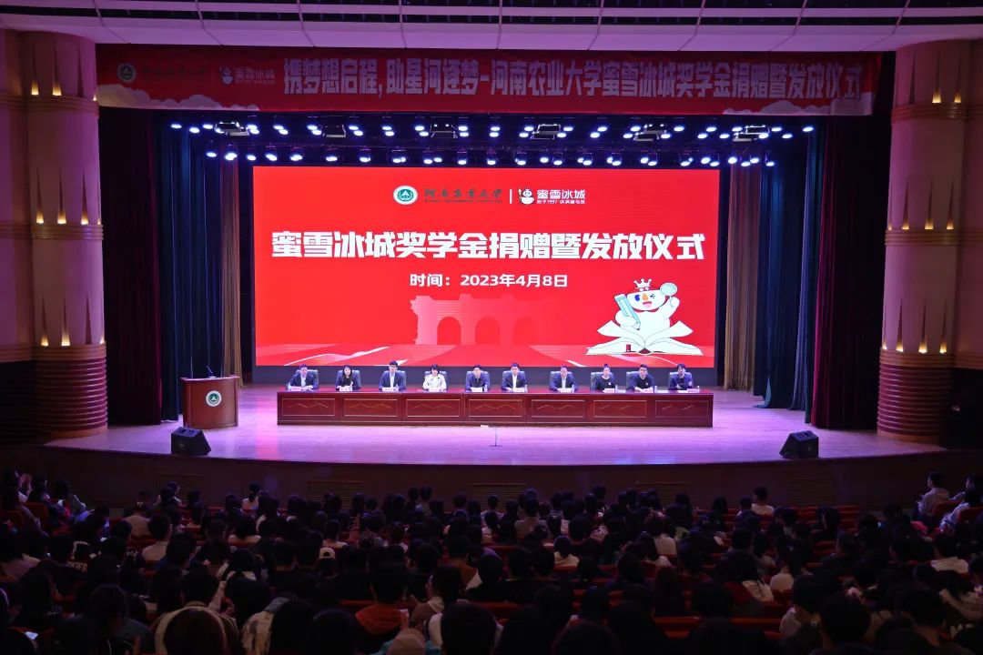 4月8日,蜜雪冰城奖学金捐赠暨颁发仪式在文化路校区大礼堂举行。蜜雪集团副总裁白砥,副校长郭战伟出席捐赠仪式,蜜雪集团有关部门负责人,亚洲色吧