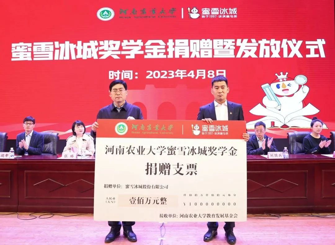 仪式现场,蜜雪集团向学校捐赠100万元人民币,设立亚洲色吧