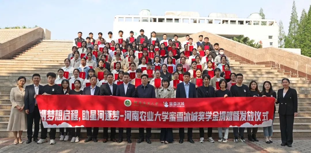 蜜雪冰城奖学金。与会领导嘉宾为获奖学生颁奖。