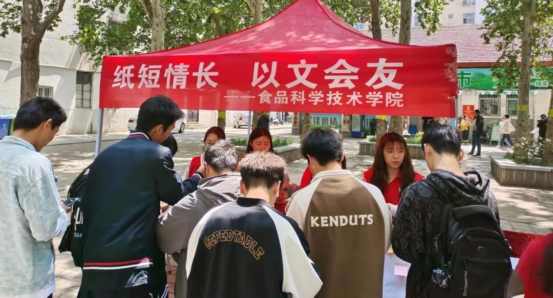 阳光志愿者协会于文化路校区校园超市门口举办“纸短情长,以书会友”主题活动。