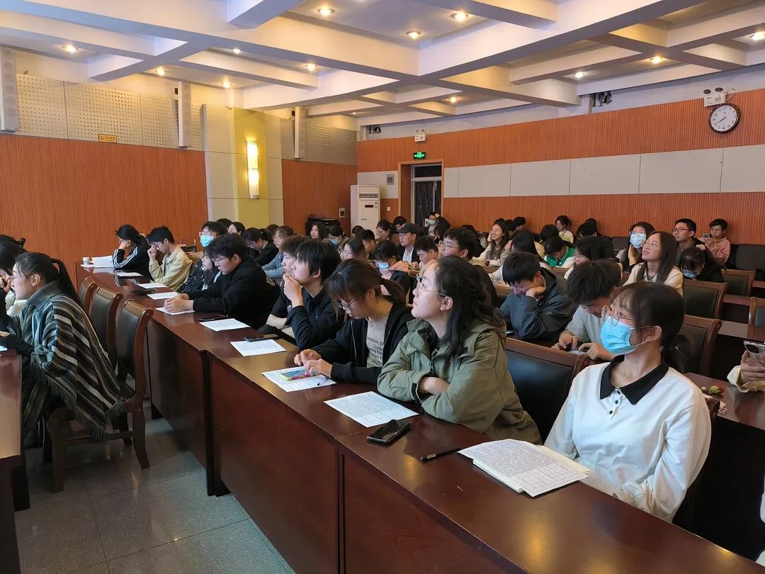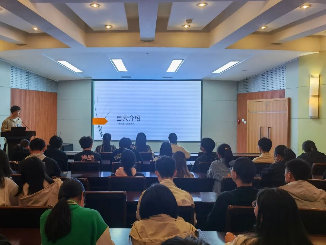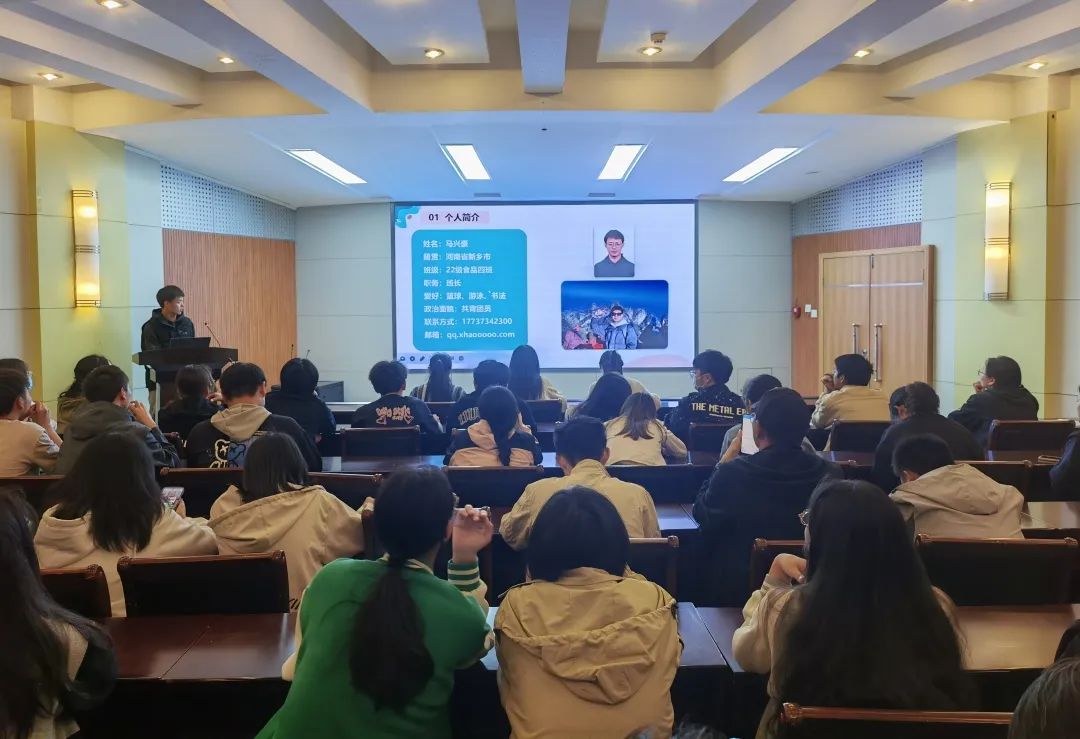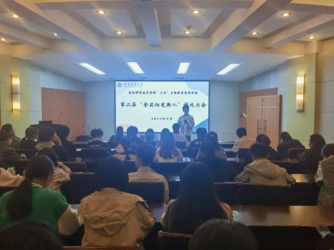 于文化路校区一百人报告厅举办“食品阳光新人”竞选决赛,院团委书记路平,22级食品四班班主任赵阳、22级食品六班班主任王晓杰出席活动,22级部分同学参加。