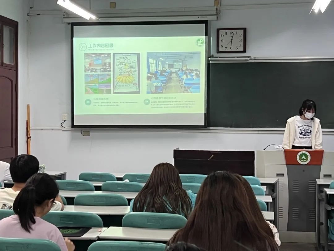 本次交流会中,蔡语铮结合ppt从工作内容回顾和以后的工作两个方面进行讲解。她带领大家回忆到,在过去一段时间里,学院在心理工作方面顺利开展了优秀心理委员评选、心理剧大赛和心理漫画大赛等活动。她希望各班心理委员能够积极鼓励同学们参与接下来的心理相关活动,并为心理委员介绍了《心理动态周汇报本》的内容以及填写要求,帮助大家更好地了解班级同学的心理健康状况。
