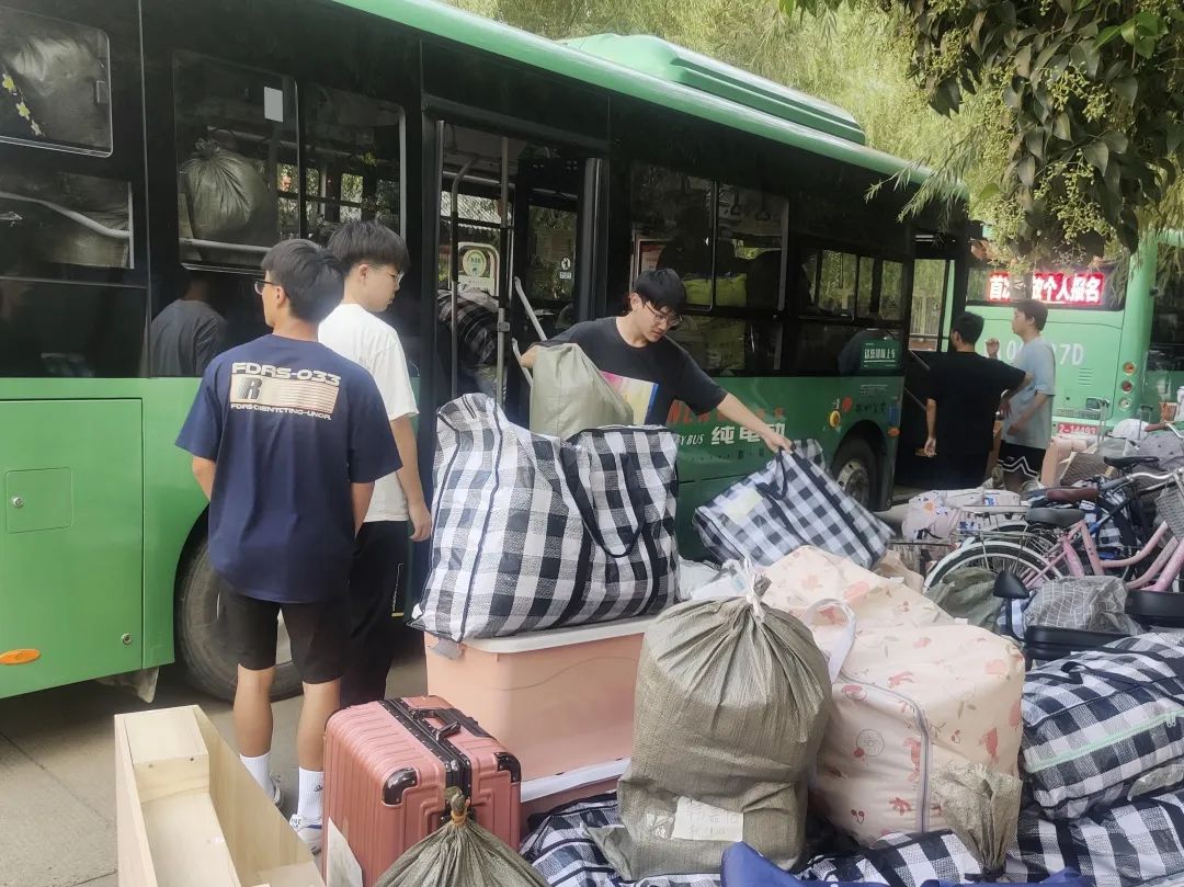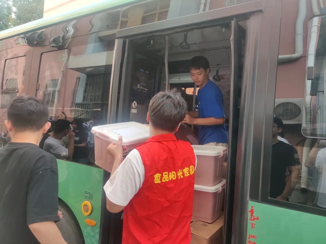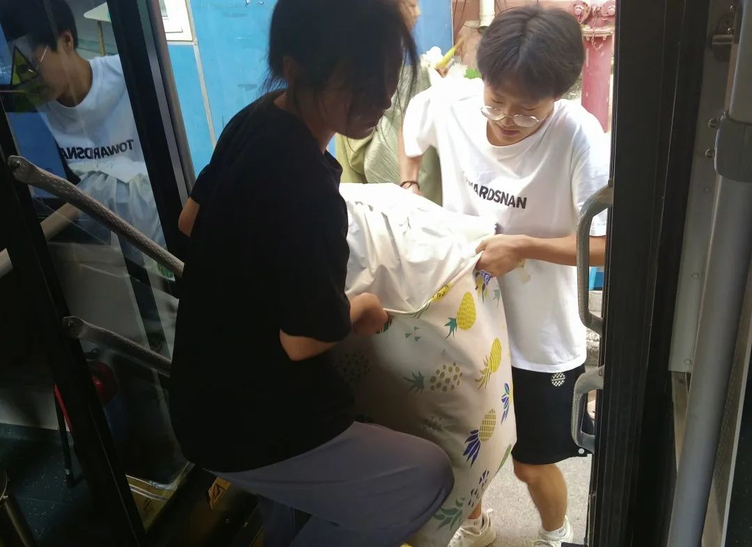 特向二区学生发放行李袋,并租借车辆、招募众多志愿者参与搬迁工作。