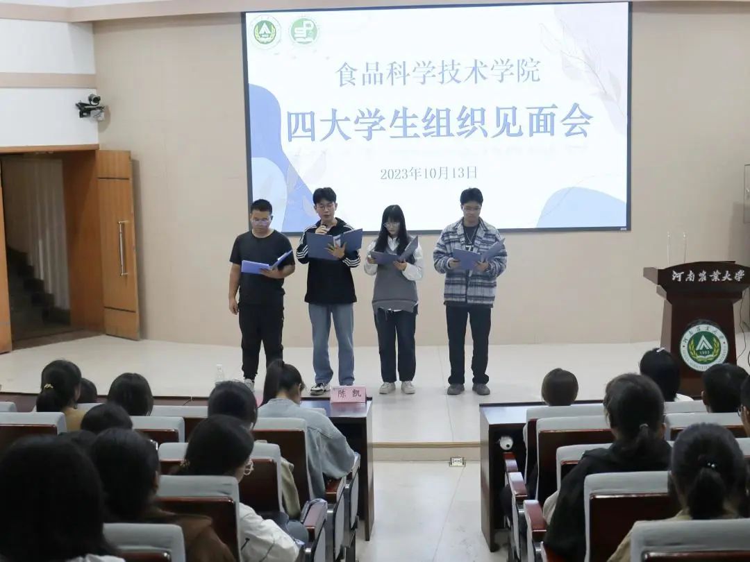 于文化路校区三百人报告厅召开团委、学生会、党建和新媒体四大组织见面会。院博士辅导员陈凯出席会议,各组织全体学生骨干及23级全体新生参加。