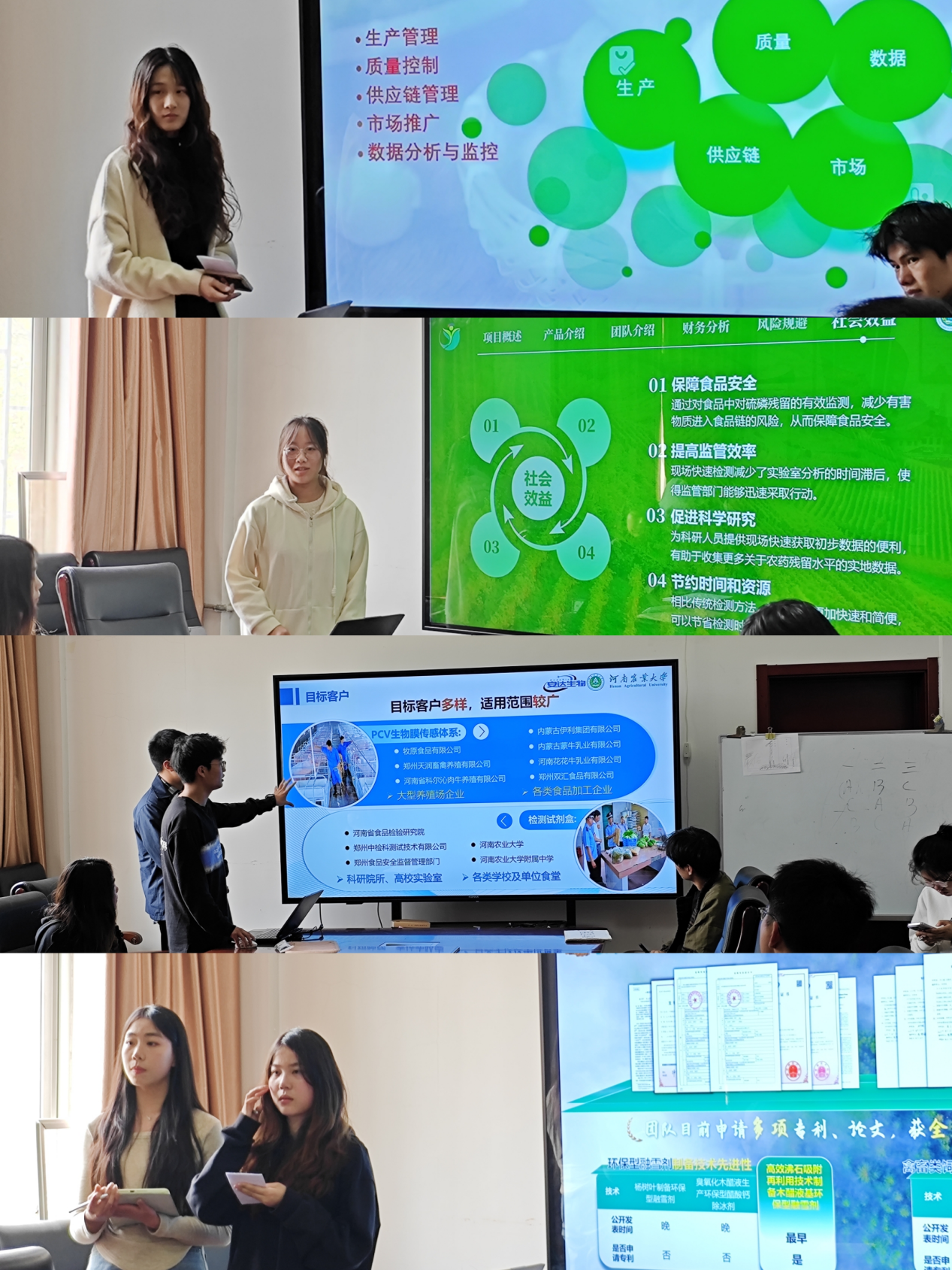 本次大赛共有12个团队参赛,发言按照抽签顺序进行,各团队的负责人分别从项目的研究过程、发展前景、独特优势等多个方面来介绍团队的项目,限时5分钟。展示结束后,参赛者对评委的疑问进行了解释和充分说明,同时虚心接受老师的指正和建议。