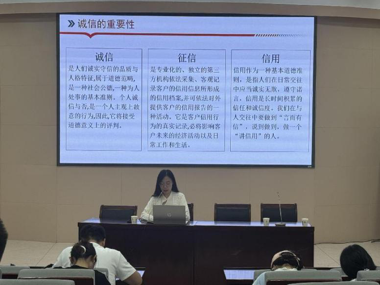 最后,诚信的重要性方面,路平从个人征信报告、如何避免产生不良信用记录、产生不良信用记录如何正确修复等三方面进行宣讲,呼吁在座毕业生守诚信,讲信用,珍爱个人信用记录,养成良好守信习惯。