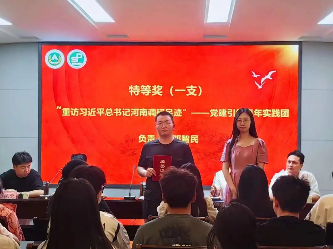 优秀团队代表邓智民向同学们分享了自己在重温习近平总书记河南调研足迹中的收获和成果,展现了食品学子自信自强的精神面貌和新时代青年的担当与作为。