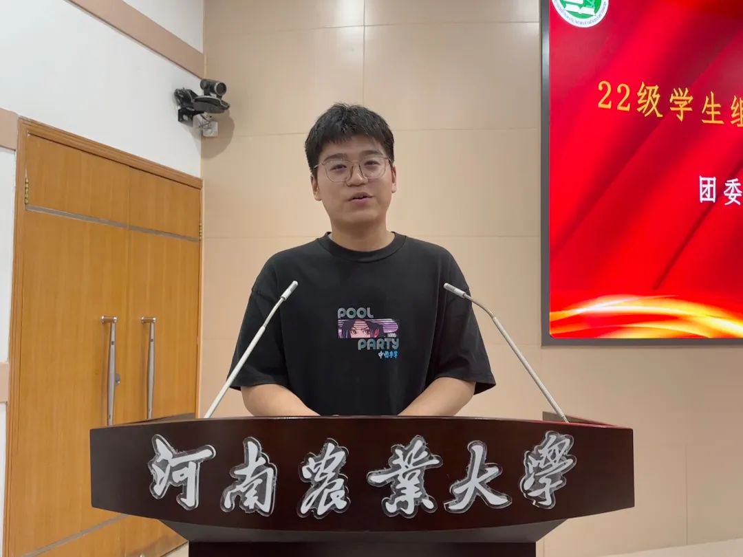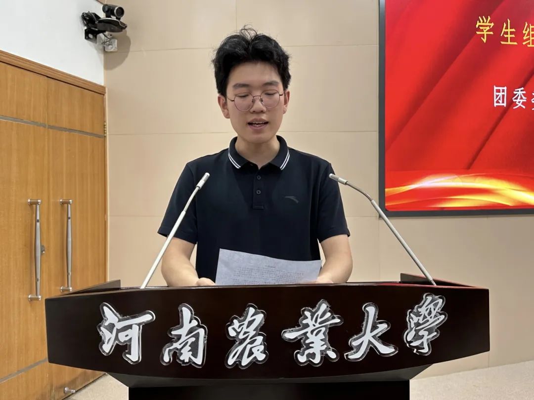新一届团委委员长周楷轩、党建中心主任马静怡、新媒体学生代表张鑫悦依次上台发言,他们分别对部门工作进行了阐述,对过去一年的工作进行了总结,他们指出,部门成员应当保持组织的先进性,使学生组织真正成为学院建设的得力助手,最后,他们表达了对未来工作信心和决心。