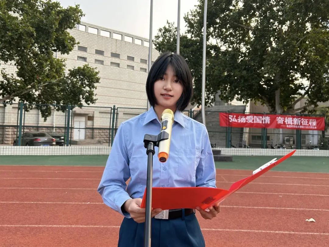 学生代表石佳宁在发言中表示,新学期我们要认真学习贯彻习近平新时代中国特色社会主义思想,以踏实的态度、创新的精神投入到学习和工作中去。