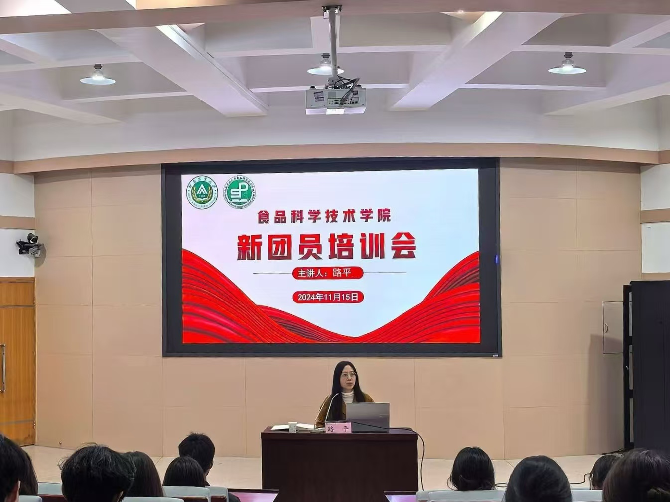 于文化路校区三百人报告厅召开新团员培训会。此次会议由院团委书记路平主讲。