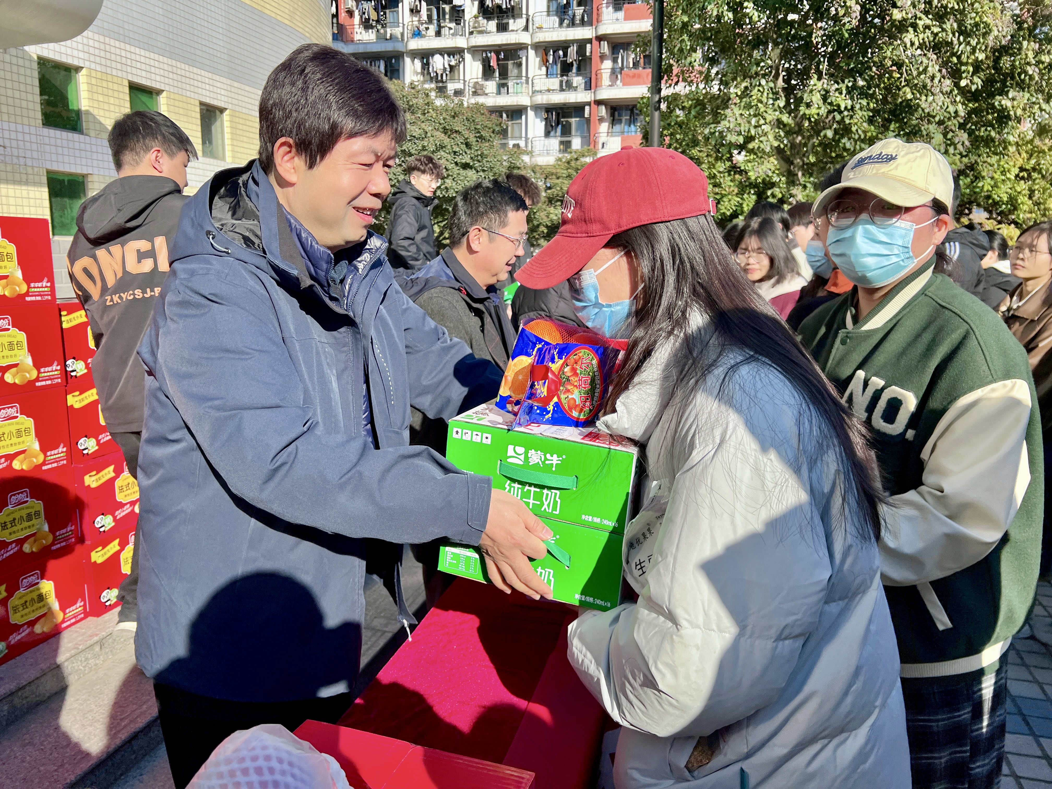 随后学院领导老师为考研学子发放了精心准备的暖心物资,饱含了学院对考研学子的深切关怀和温情陪伴,同时,送上美好祝福,鼓励同学们保持积极向上的心态,注意劳逸结合,发挥自己的真实水平,取得优异成绩。同学们接过这份来自学院的温暖,脸上洋溢着幸福的笑容,纷纷表示将以更加饱满的热情投入到接下来的备考中。
