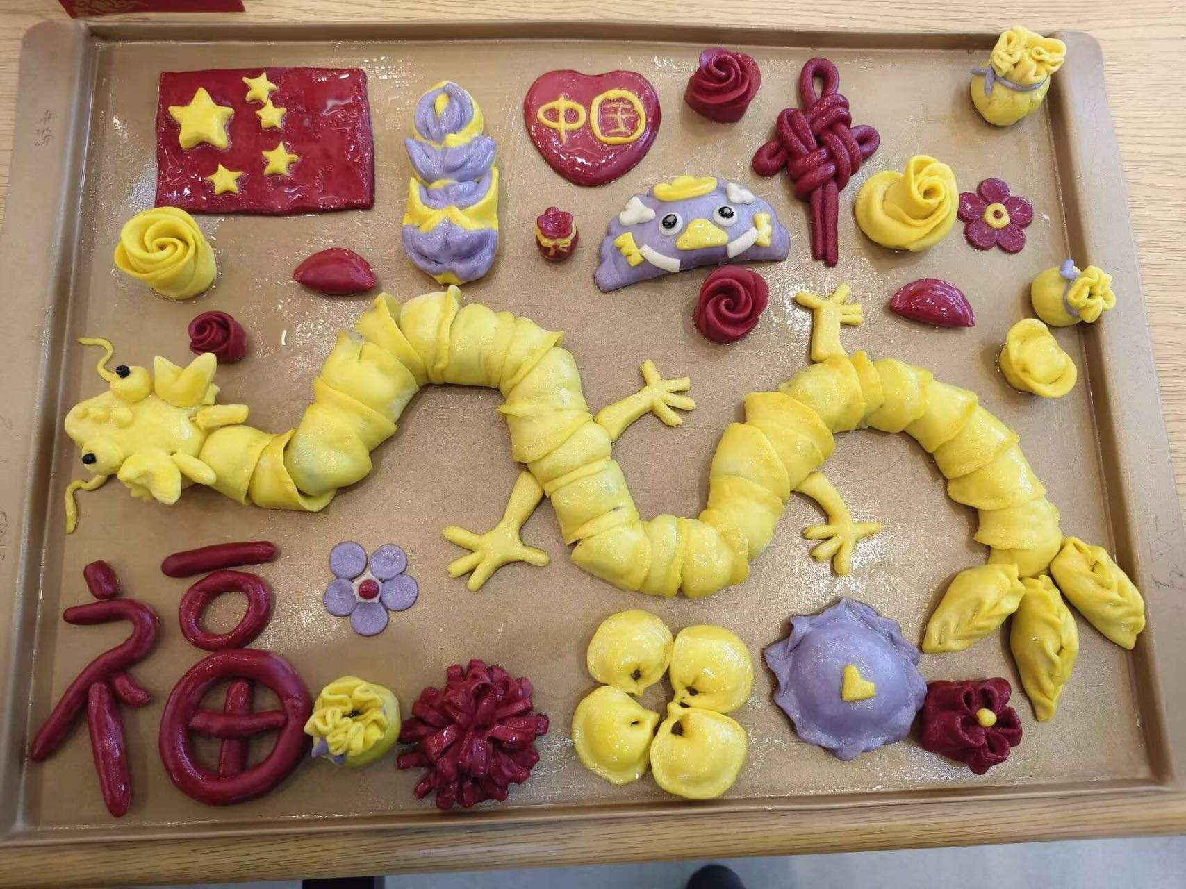 大赛前,参赛选手们在食品工艺实验室大展身手。在比赛的过程中,选手们表现得井然有序,他们以集体的智慧为指引,创作出了五花八门、创意无限的作品。他们将饺子视作画布,以温馨的情感作为颜料,描绘出自己的青春风采。各参赛队伍将面粉变幻出各种形态,利用五味俱全的馅料来表达他们内心的期盼,力图让每一件作品都成为一首青春的赞歌。参赛者们用他们饱满的热情展现出青春的风采,塑造了“祥瑞”、“和和美美”、“福泽”、“‘饺’踏实地”等主题,别具匠心的作品又体现了同学们的团结一致凝聚力。色彩和谐的创作,仿佛让人置身于一场视觉的盛宴。此外,学子们还巧妙地制作了美味的糖葫芦和棉花糖,让大家在寒冷的冬日也能体会到温暖与甜蜜。