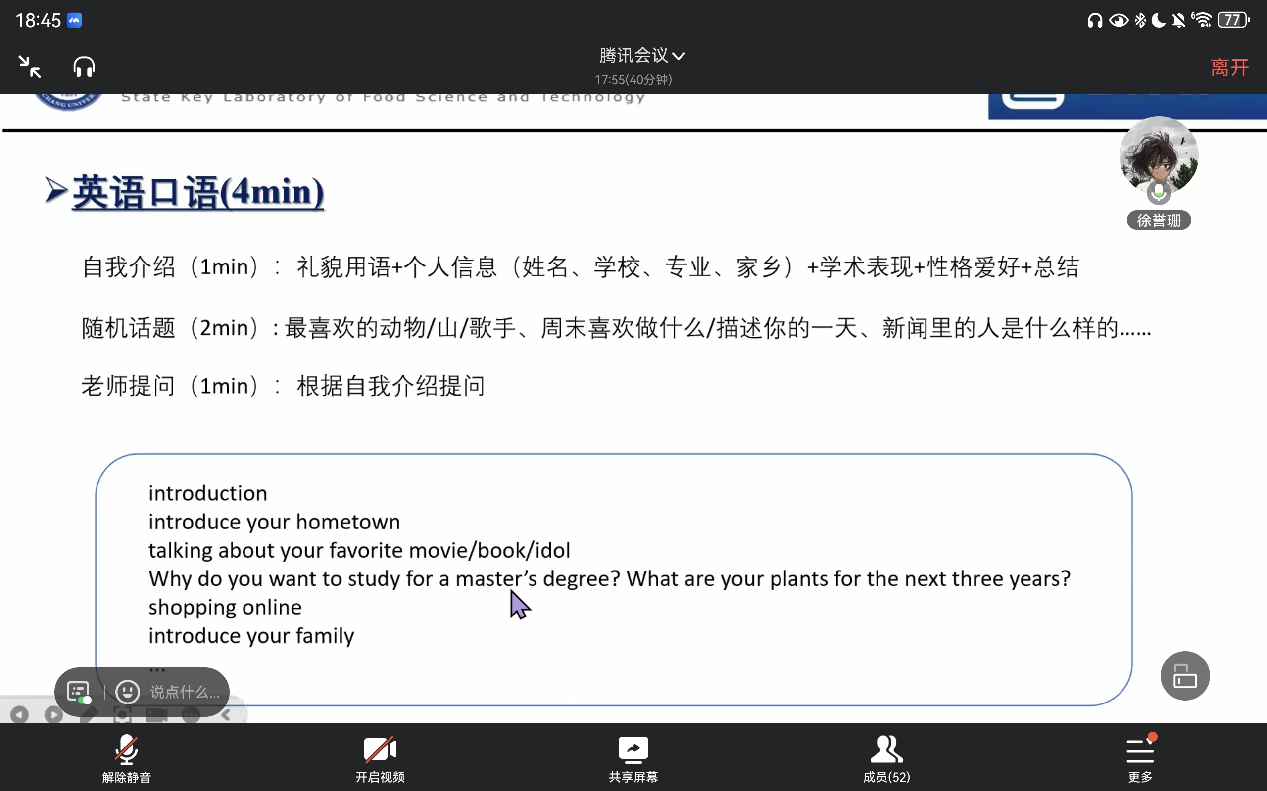 举办了2025年研究生复试线上解答会。本次解答会吸引了众多考生在线参与,会议邀请了三位“上岸”同学——徐誉姗,郭会芳,袁培华为大家答疑解惑。