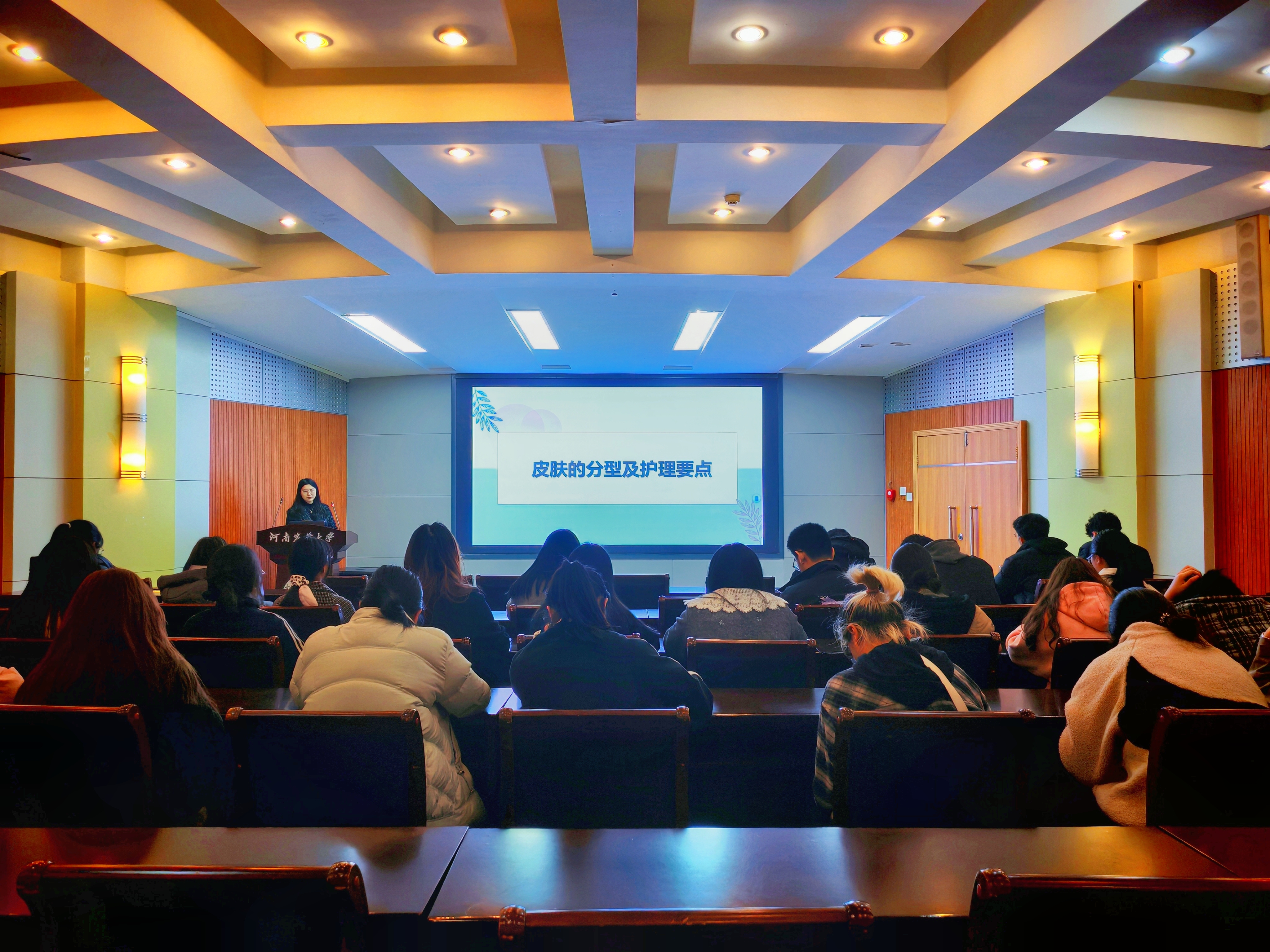 3月7日,赵培均老师在100人报告厅以渊博的学识和幽默风趣的语言,带领同学们领略了古典美学的独特魅力,结合自身多年的研究和实践经验,为同学们讲解了皮肤的结构、护肤品的成分以及科学护肤的步骤和方法。从清洁到保湿,从防晒到抗衰老,赵老师用通俗易懂的语言,将复杂的护肤知识讲解得清晰明了,让同学们受益匪浅。
