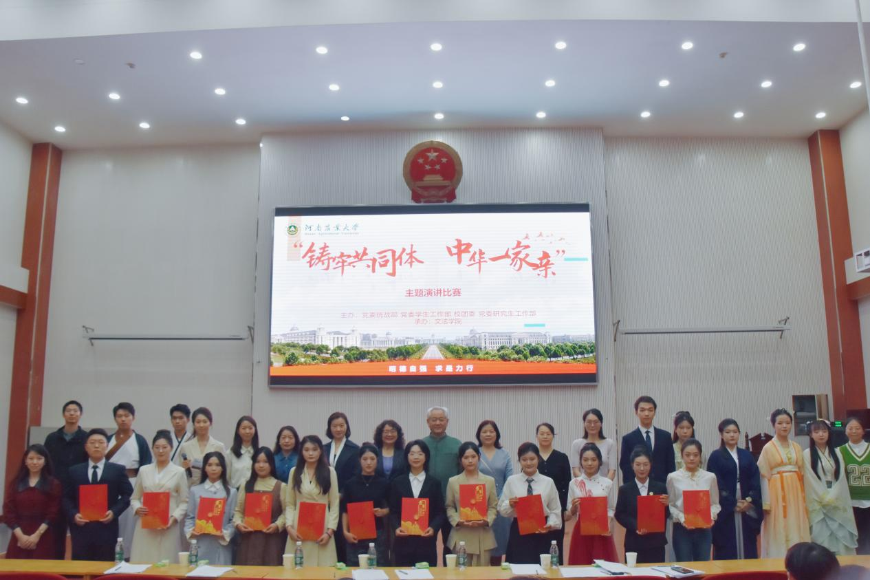 (通讯员 齐沛桢)近日,由校党委统战部、党委学生工作部、校团委、党委研究生工作部联合主办,文法学院承办的“铸牢共同体,中华一家亲”主题演讲比赛决赛在龙子湖校区模拟法庭圆满落幕。25级食工类五班齐沛桢同学在比赛中表现优异,荣获二等奖。