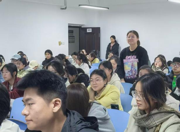 在分享环节,李京香系统介绍了保研流程与个人规划,指出保研是“信息战与规划战”,提醒同学们尽早准备、多方尝试、保持心态。袁鸣梦以“个人成长”为主线,分享了高效学习、学生工作与竞赛科研等方面的经验,强调全面发展与持续积累的重要性。杨然则围绕学业夯实、能力拓展与规划执行,梳理了推免各阶段重点,鼓励大家善用信息、积极行动、稳步前行。最后,辅导员张金龙在总结中提醒大家,推免不仅检验学业水平,更是对长期积累与综合素养的全面考察。