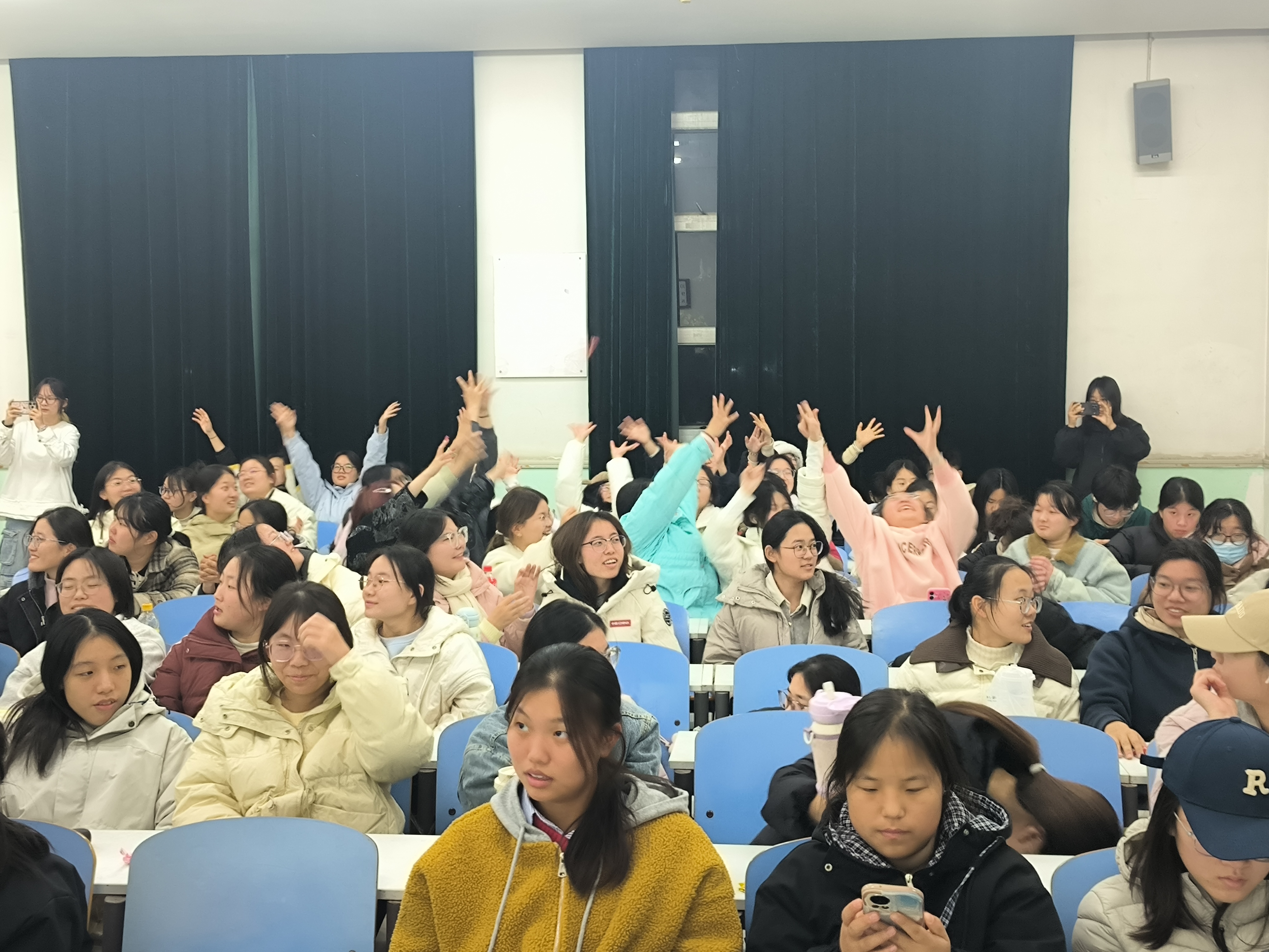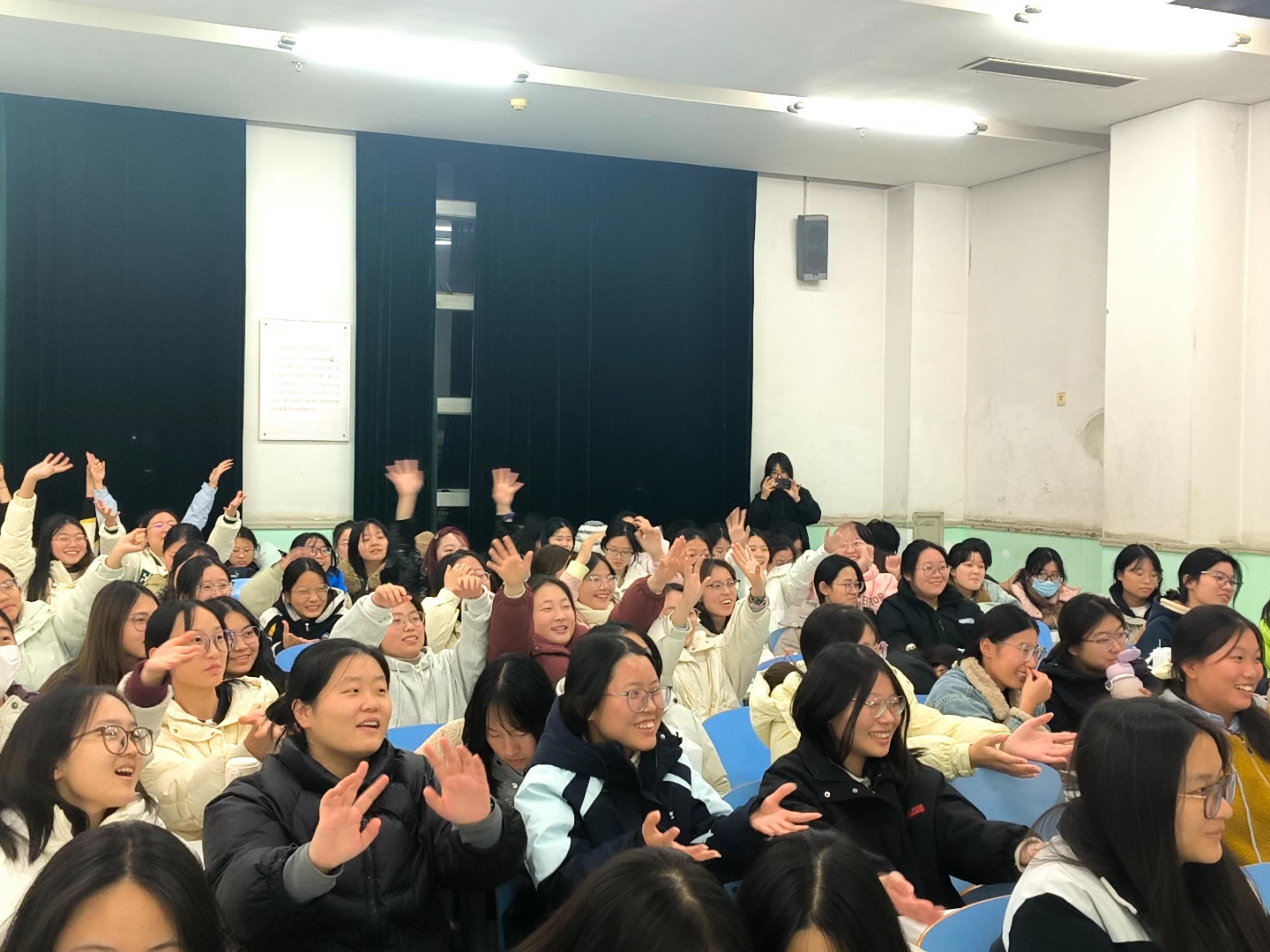 互动结束后,激动人心的抽奖环节如期而至。同学们纷纷扫描屏幕上的二维码参与抽奖。最后,主持人李姝玥总结本次见面会,鼓励新生们勇敢追逐兴趣,积极加入心仪社团,在大学生活中书写精彩篇章。