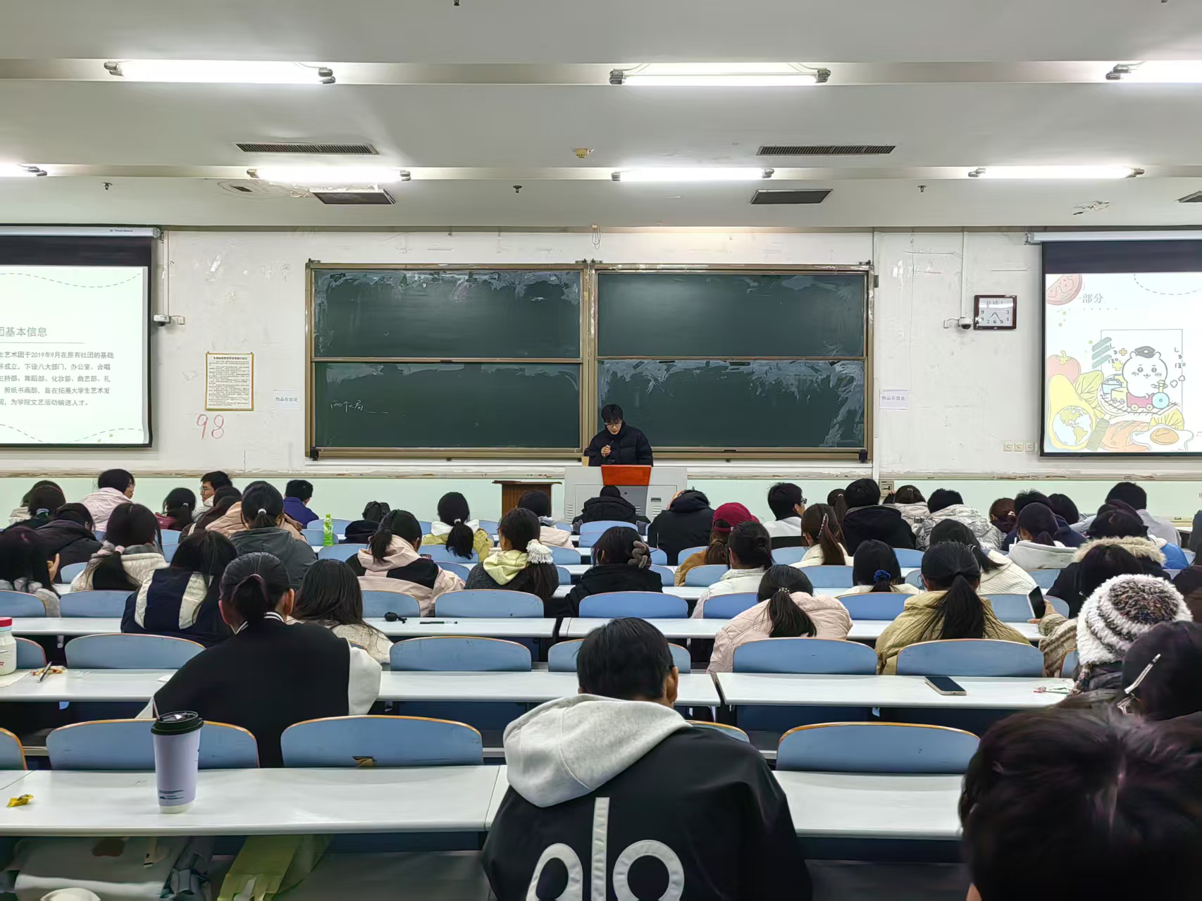 见面会在轻松欢快的氛围中拉开帷幕。五大社团依次登台亮相。各社团负责人通过PPT详细介绍了社团的发展历程、组织架构、核心活动与荣誉成就,分享了社团成员的成长收获与未来发展规划。各社团的独特魅力让在场同学心动不已。